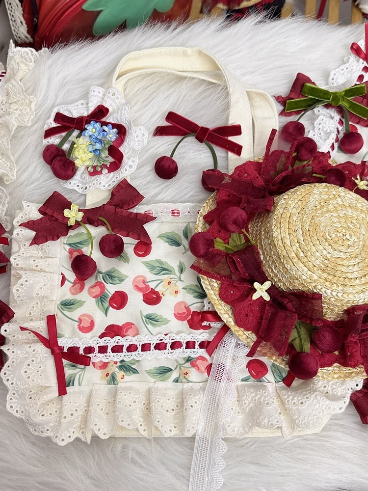 Trim Canvas Print Lolita Lace Cherry Sweet Handbag