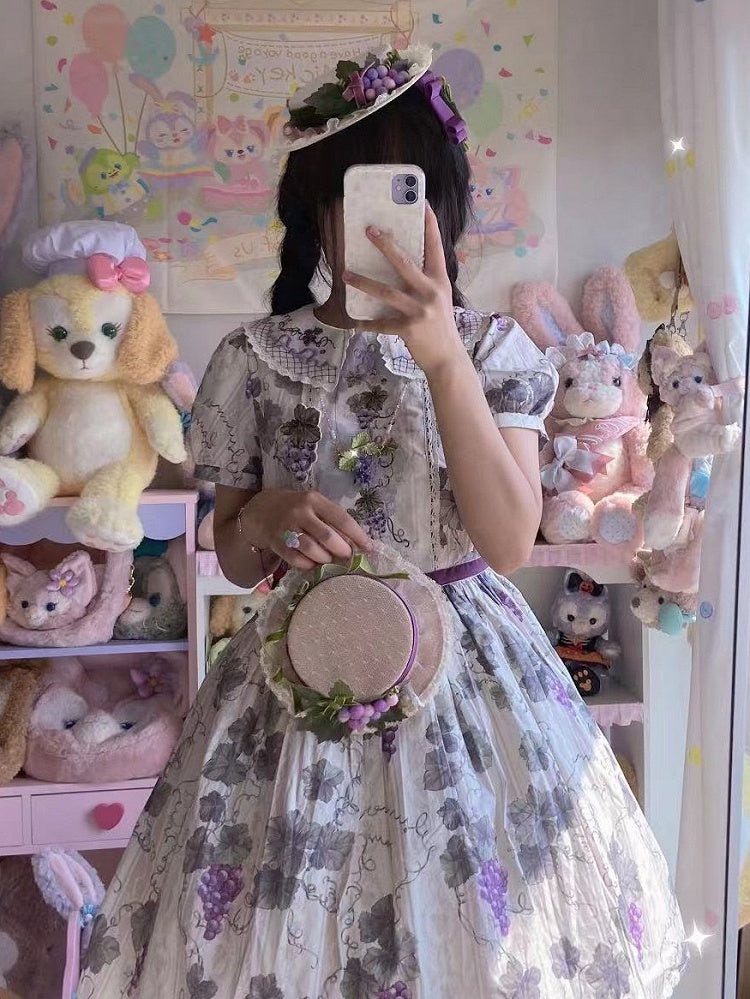 青と白のオールドスクールロリータファッションドレス 蝶結びディテール JSK セット