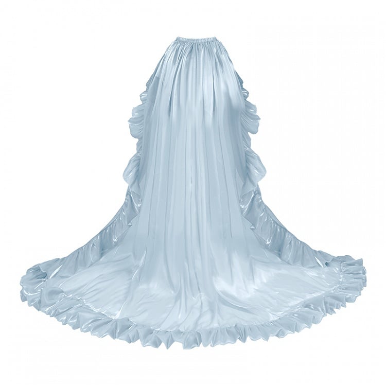 ブルー/ベージュ/グレーのフラウンストリムのフロア丈トレイン