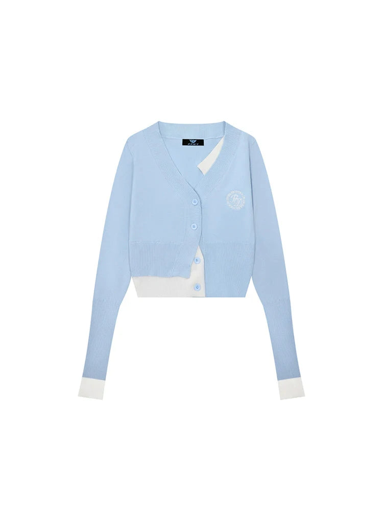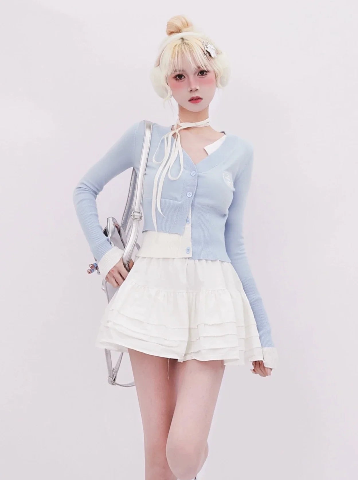 2ピースブルーレトロアイスガーリーフェイクカーディガン