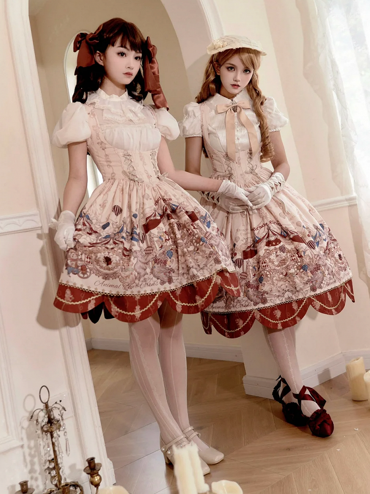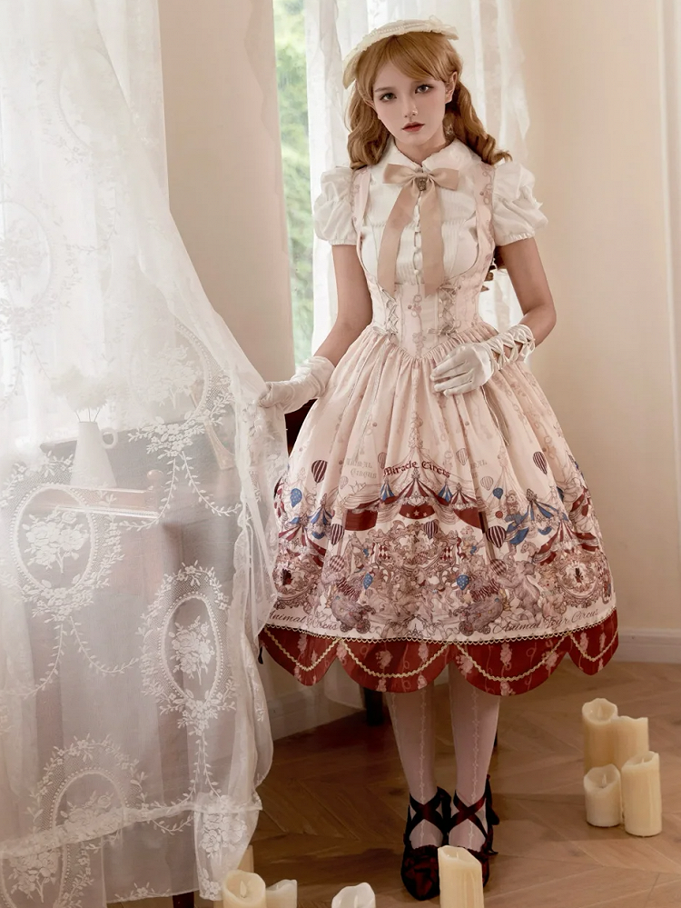 アンダーバスト、ボーンウエスト、サーカスアニマルプリントのロリータジャンパースカートで、あなたの内なるキュートさを解き放ちましょう!ロング丈なのでどんなシーンにもぴったり。サーカスアニマルへの愛を込めて、この愛らしいジャンパースカートでウエストをアピールしましょう。