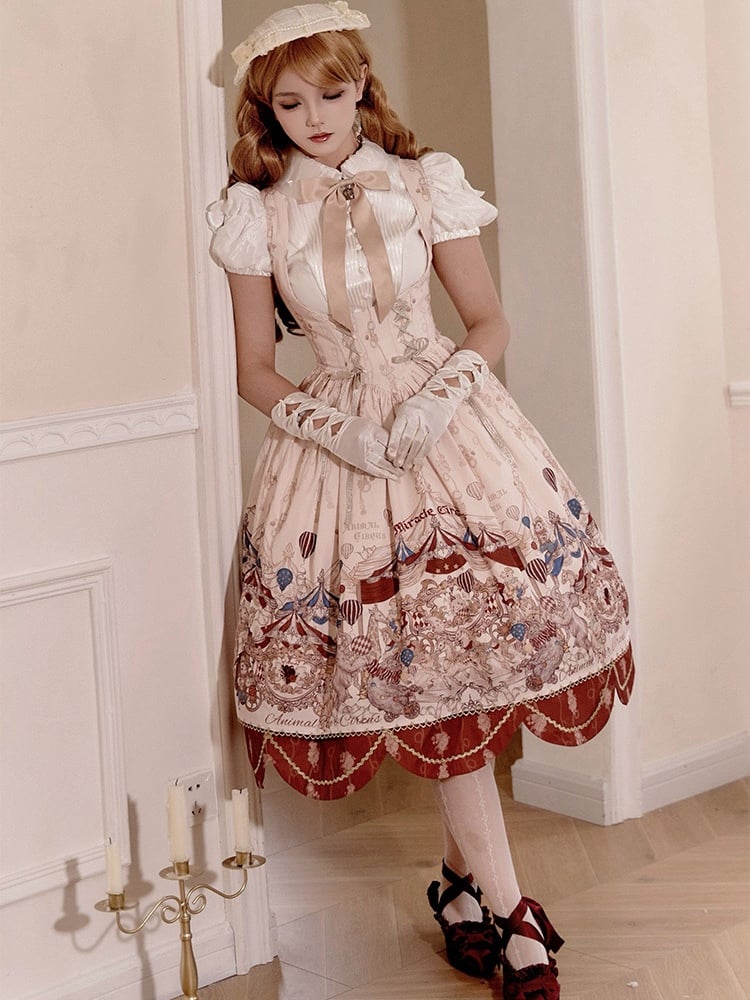 アンダーバスト、ボーンウエスト、サーカスアニマルプリント、ロリータジャンパースカート、ロングバージョン