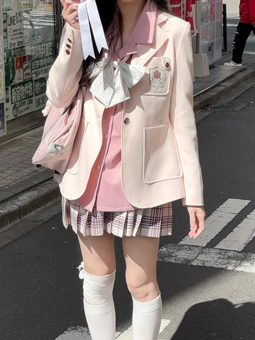 グリーン/ピンク/ホワイトのプレッピースタイルのノッチカラーJK制服シャツ