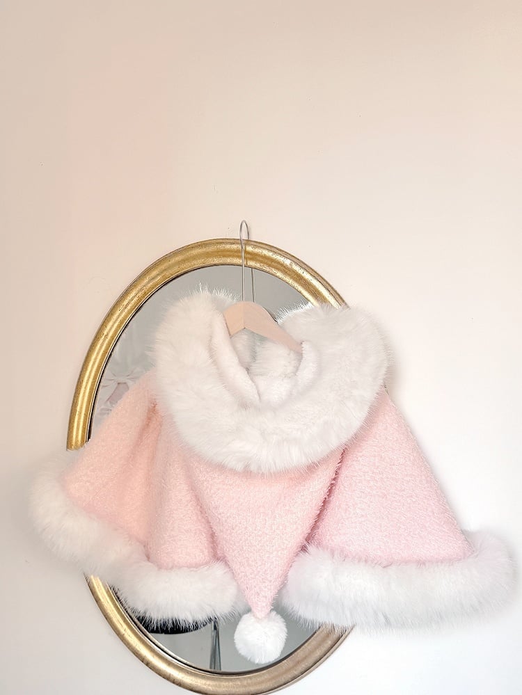 バレンタインデーのピンクのリボンが豪華なネックラインと裾のボーン入りドレス + ケープフルセット