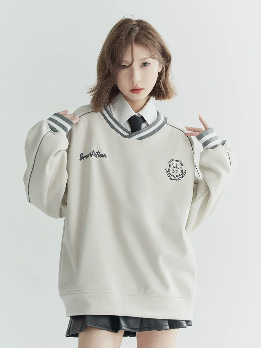 カジュアルとスポーティさを兼ね備えた、愛らしいVネックトップス。ゆったりとした着心地が魅力です。フロック加工の素材が、より上品な質感をプラス。リラックスしたお出かけにぴったりのトップスで、一日中キュートで快適な気分を味わえます。