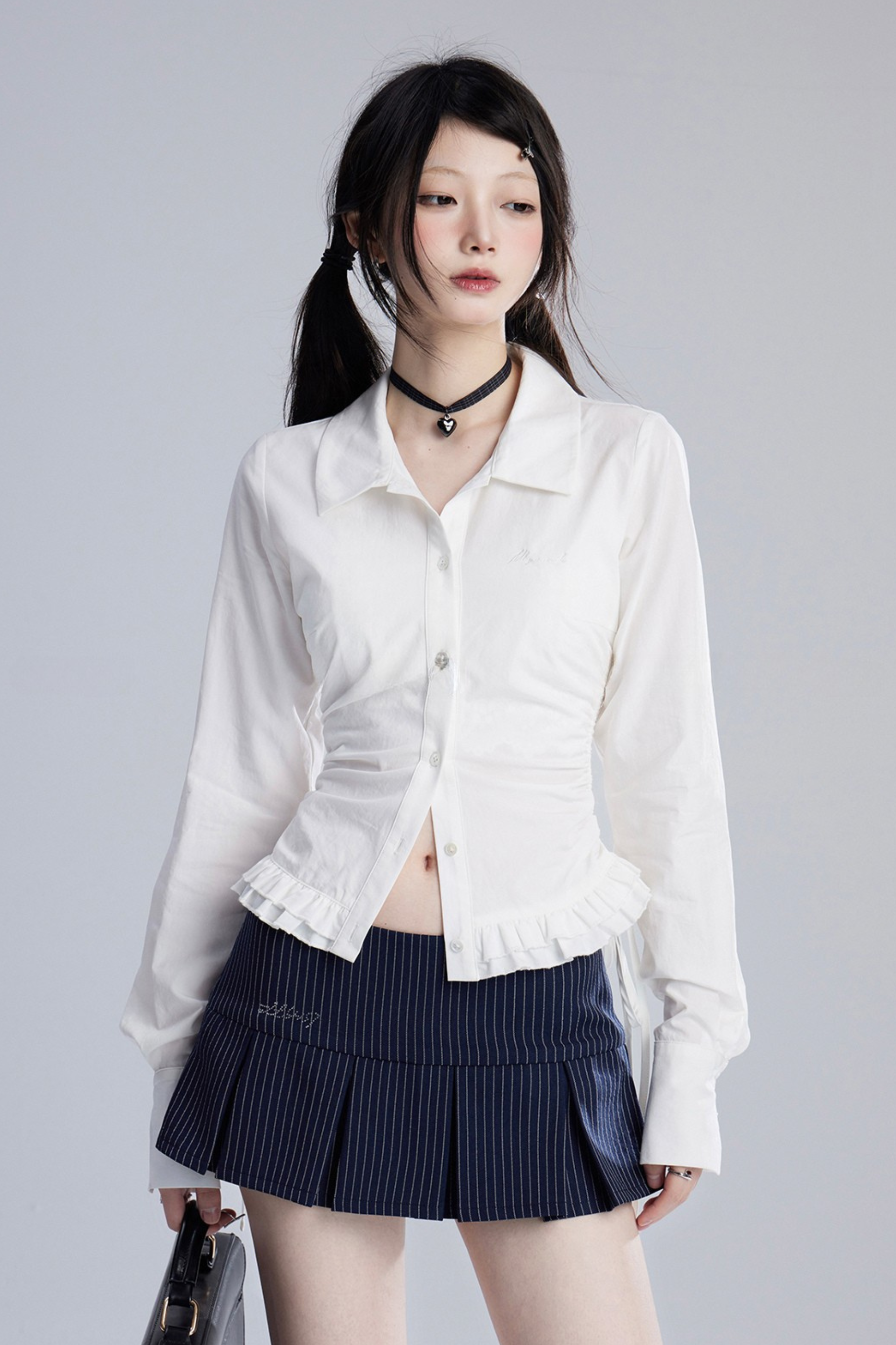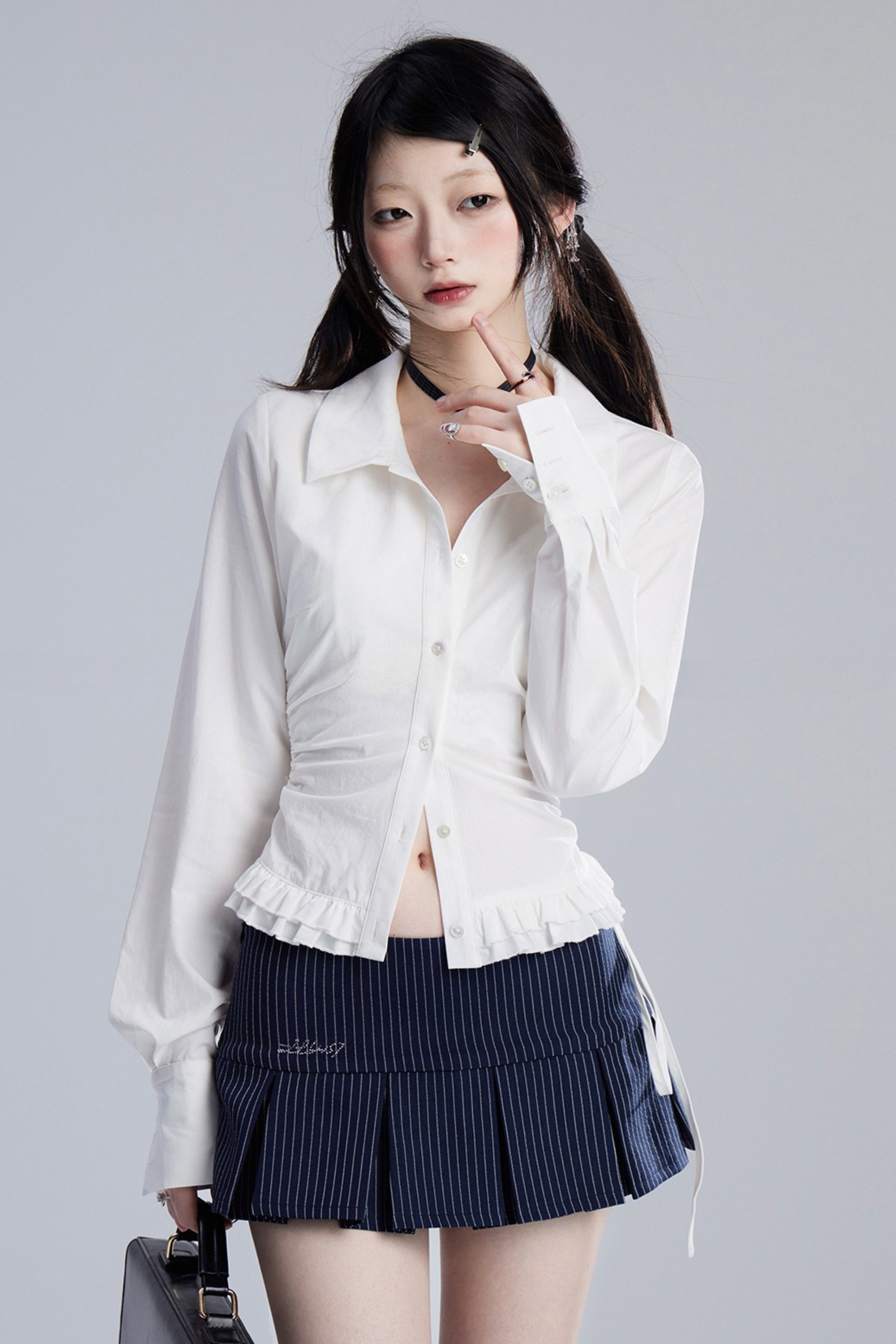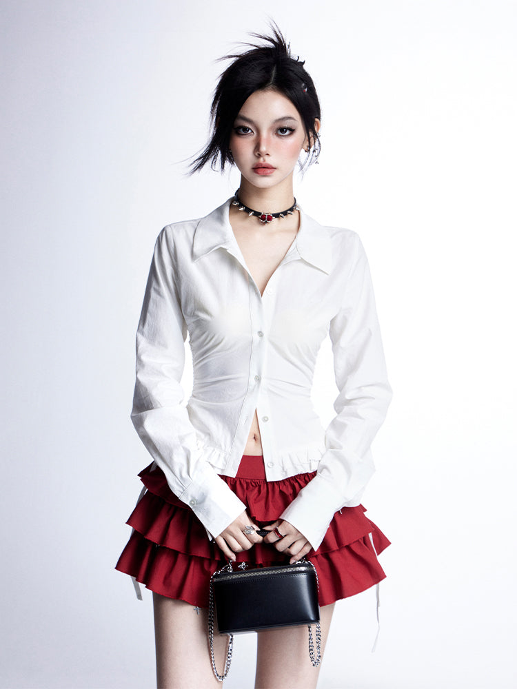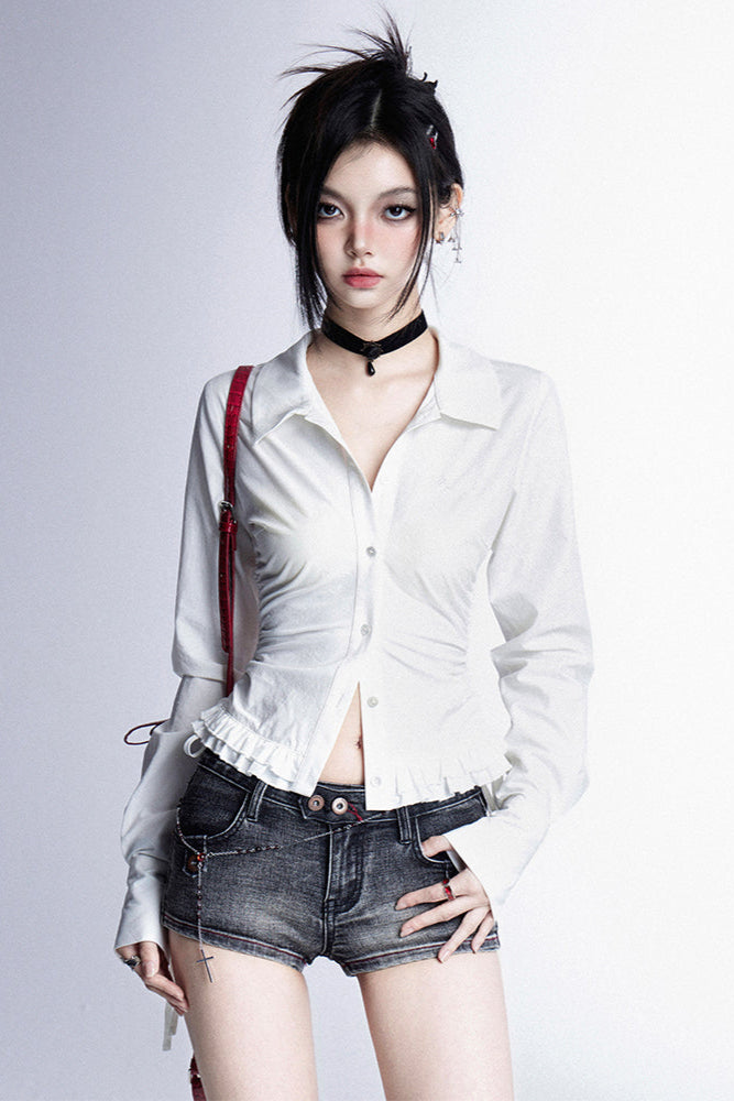 ❤モードスリムVネックプリーツブラウス❤