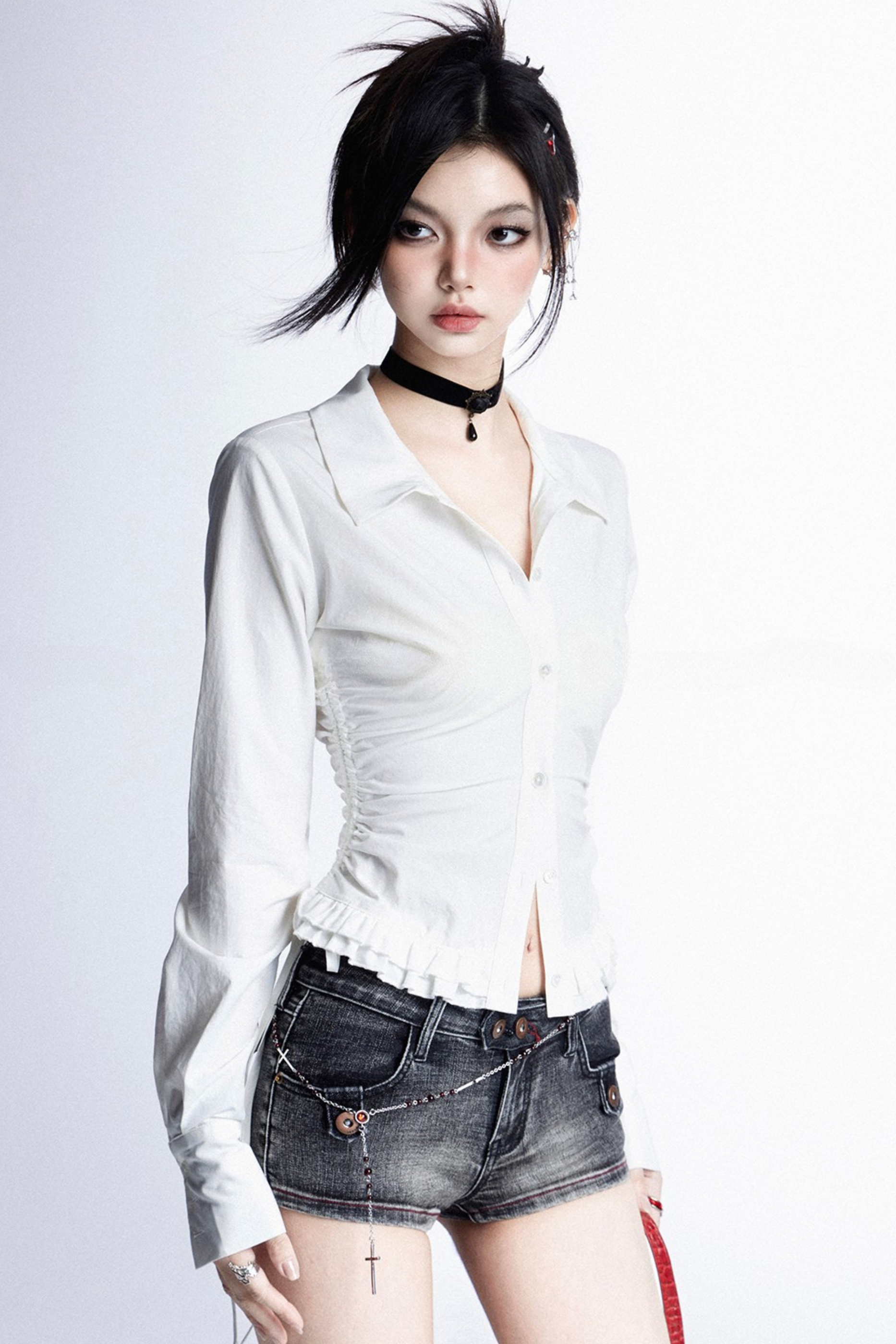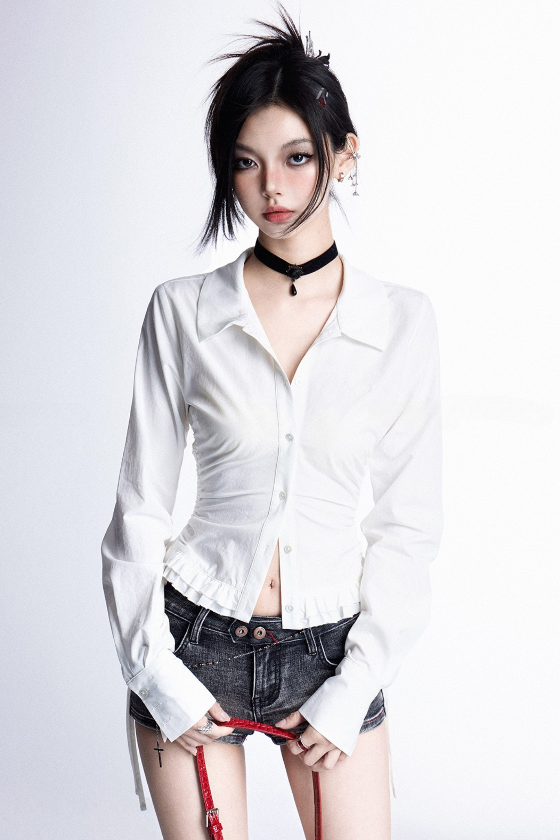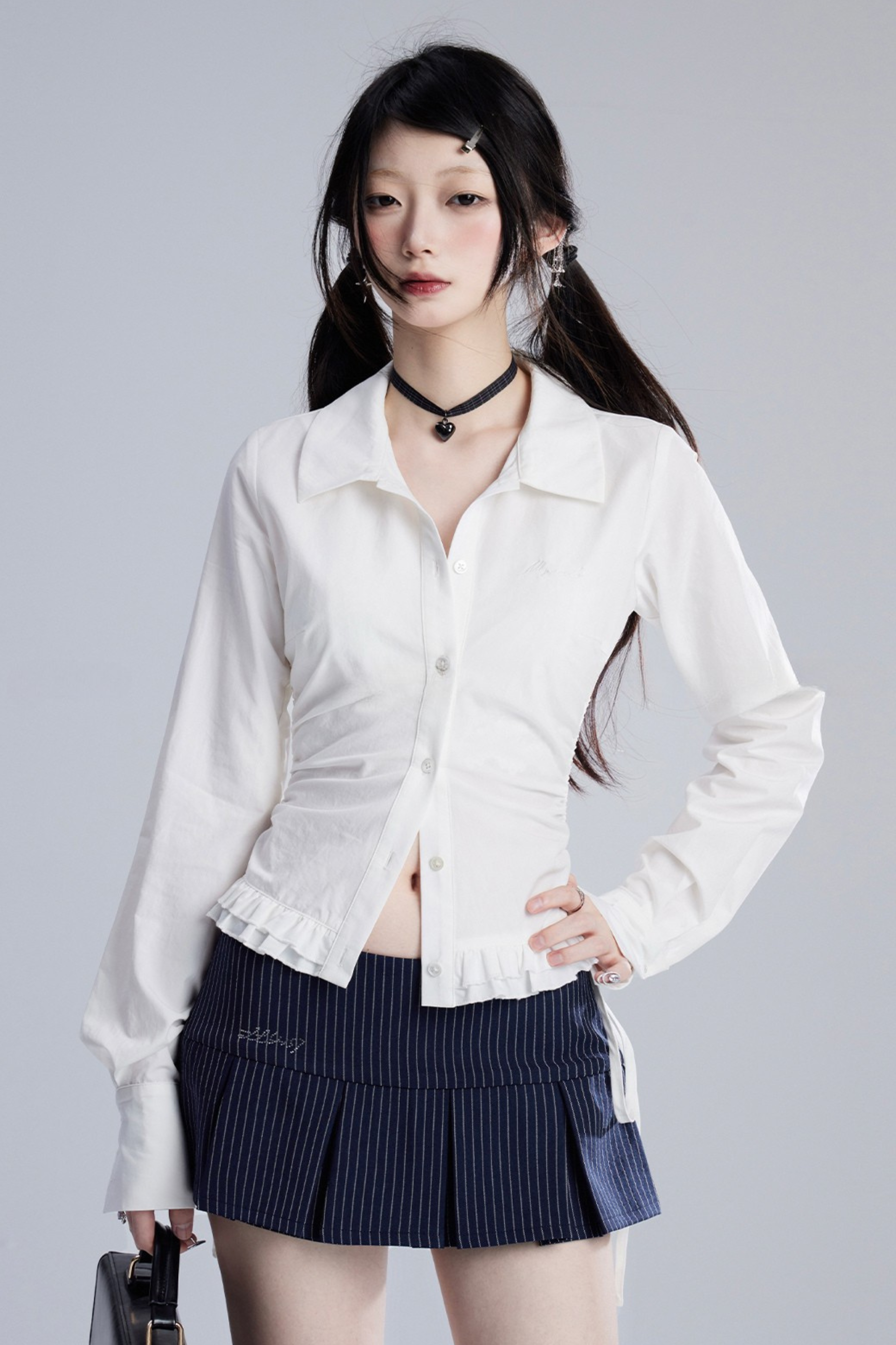 ❤モードスリムVネックプリーツブラウス❤