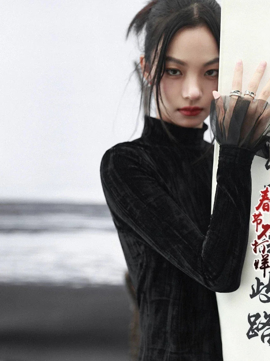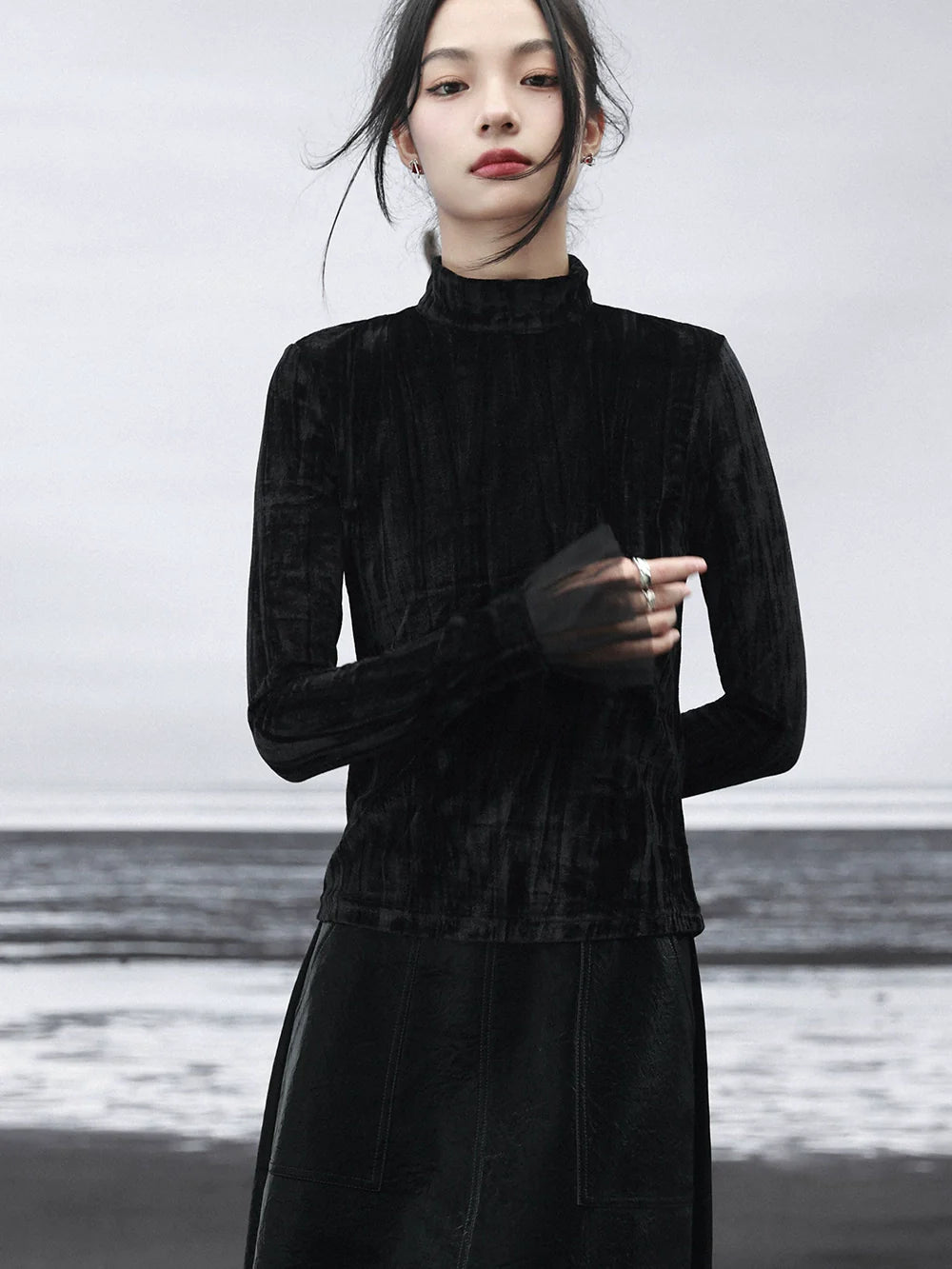 ベルベットダークタートルネックスプライシングシャツ(メッシュレトロ)のご紹介です!ベルベットの柔らかさとメッシュのエッジの効いたディテールが融合した、愛らしいタートルネックシャツです。どんな装いにもレトロな華やかさをプラス。スタイルを犠牲にすることなく、快適な着心地をキープできます。