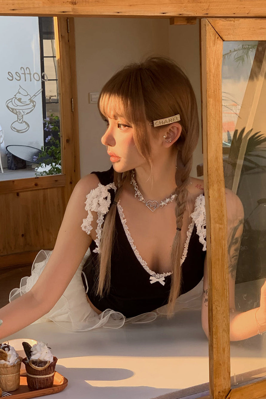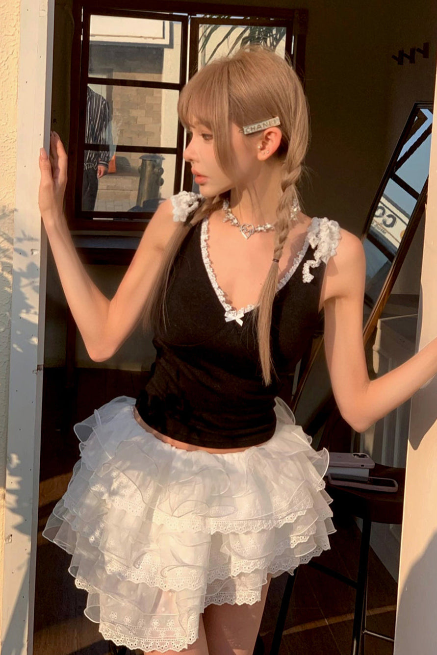 黒と白のオールドスクールロリータファッションドレス蝶結びロリータJSKセット