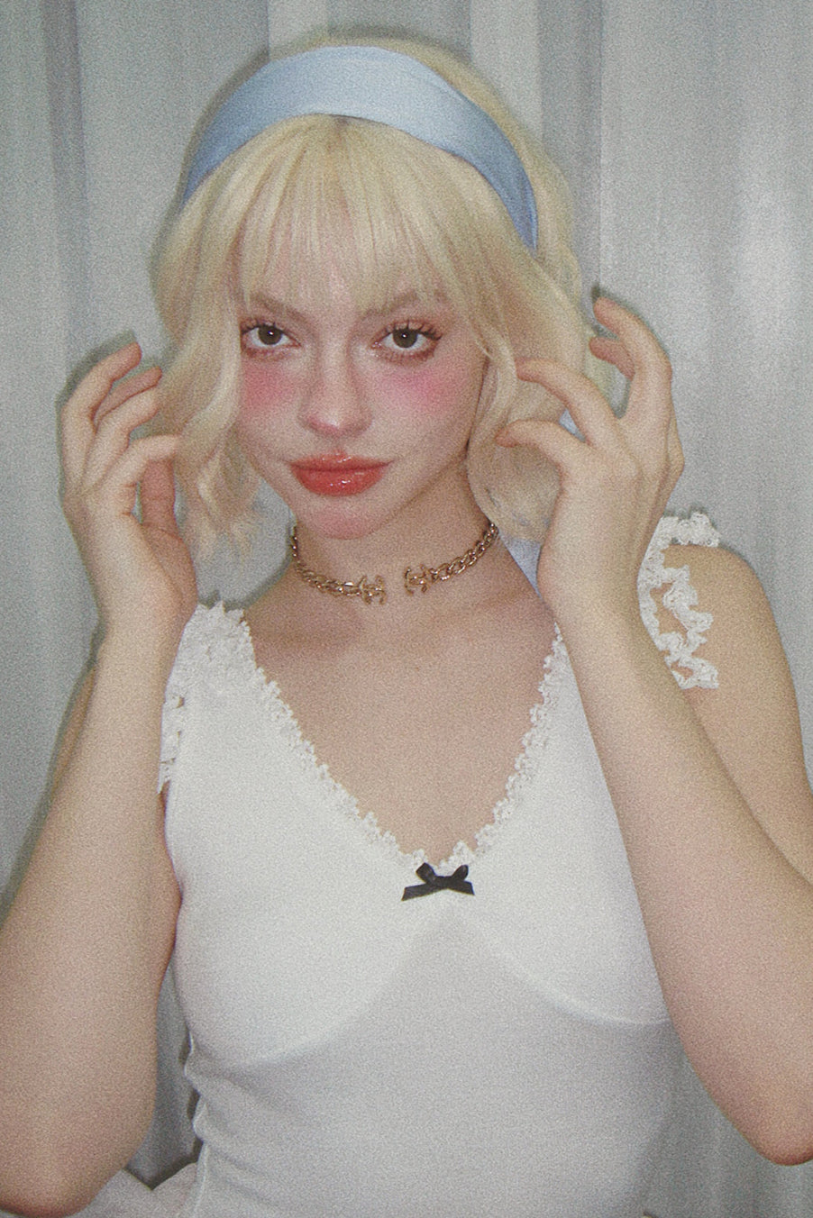 青と白のオールドスクールロリータファッションドレス 蝶結びディテール JSK セット