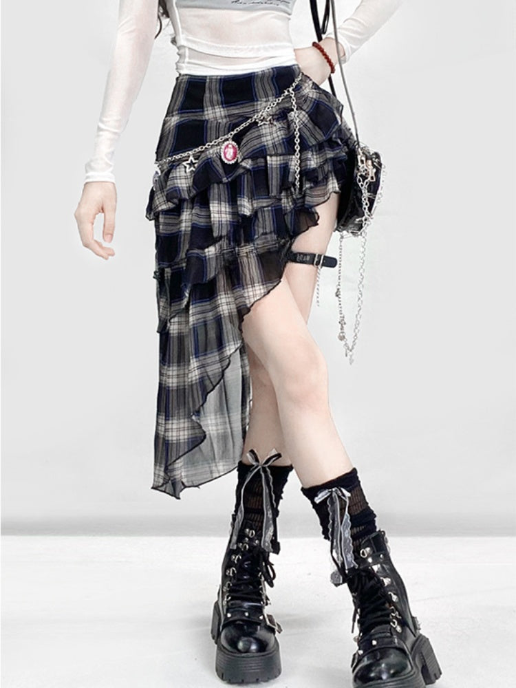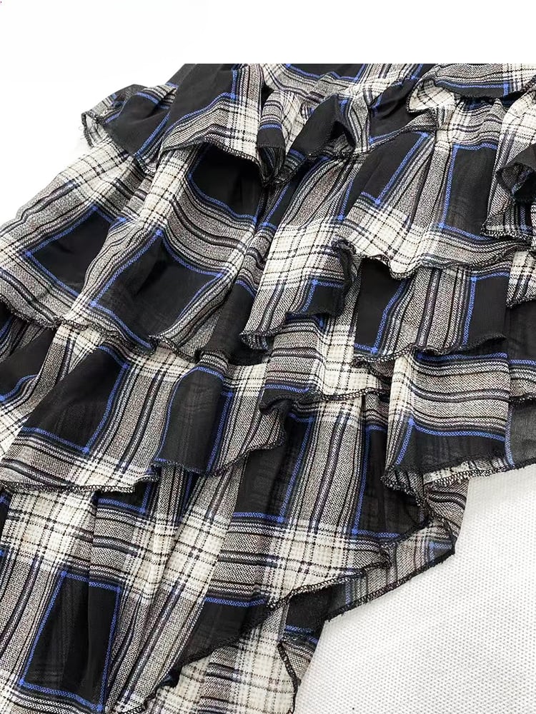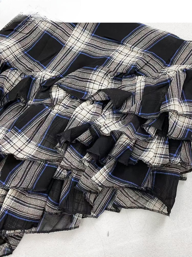 ヴィンテージな白黒チェック柄アシンメトリーヘムスカートで、あなたの内なるキュートさを解き放ちましょう!グラマラスなハイウエストとティアードデザインがスタイルを美しく見せ、ユニークなアシンメトリーヘムが遊び心をプラス。スタイリッシュで遊び心のあるルックにぴったりです。
