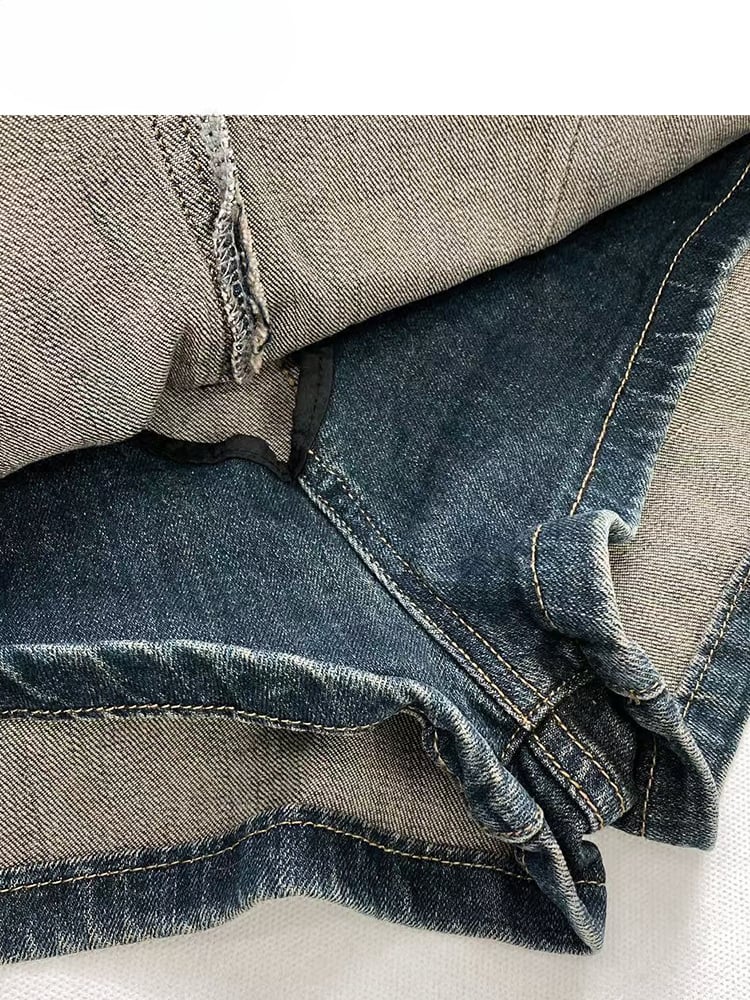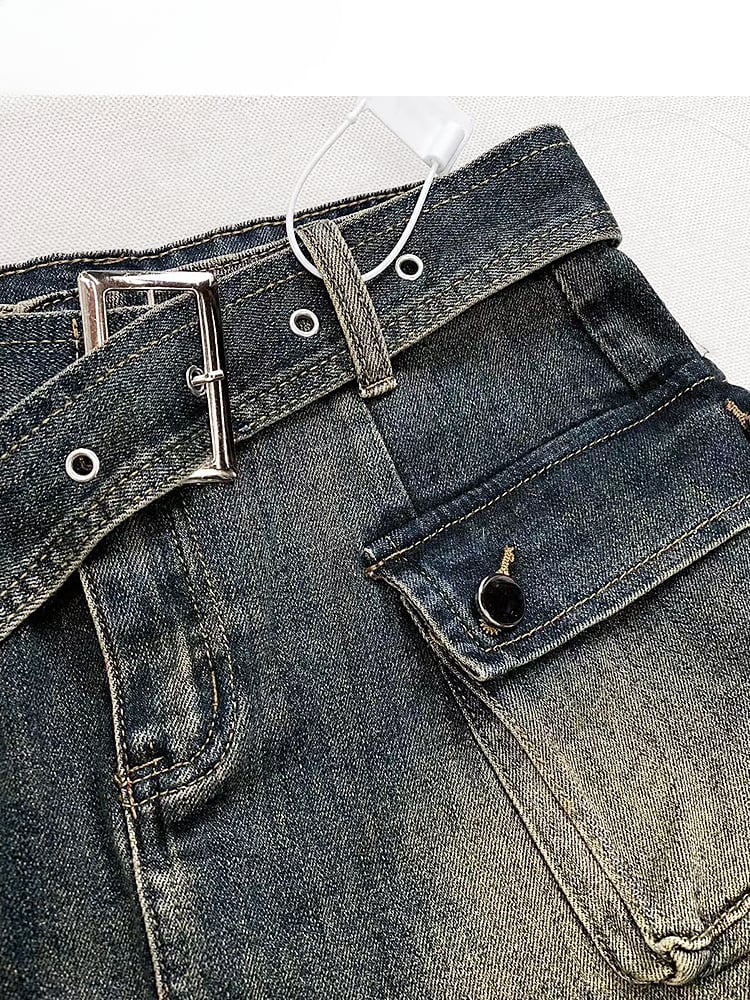 ヴィンテージ ダークブルー ダメージデニム グラマラス スカート カーゴポケット付き