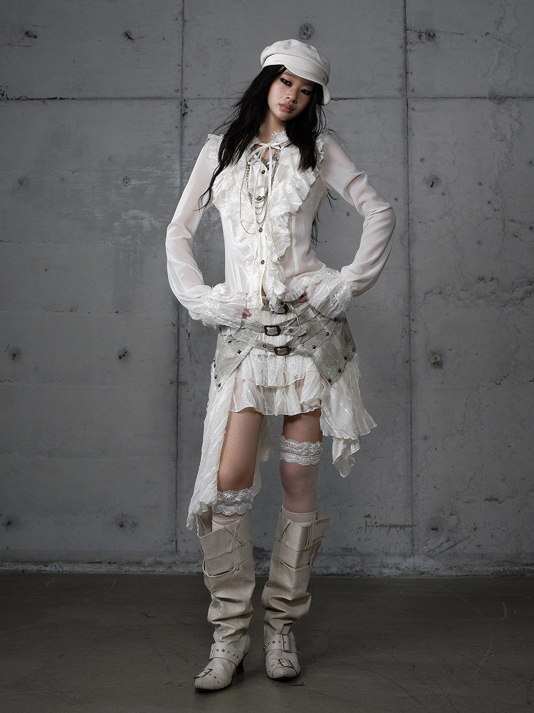 ● Front Button Placket / Lace Trim / Ruffle Trim / Self-tie Straps