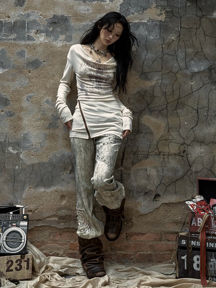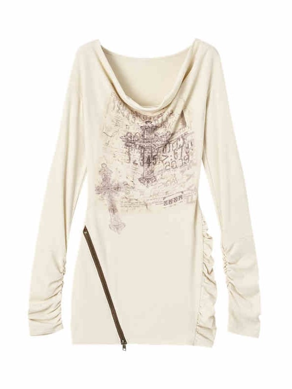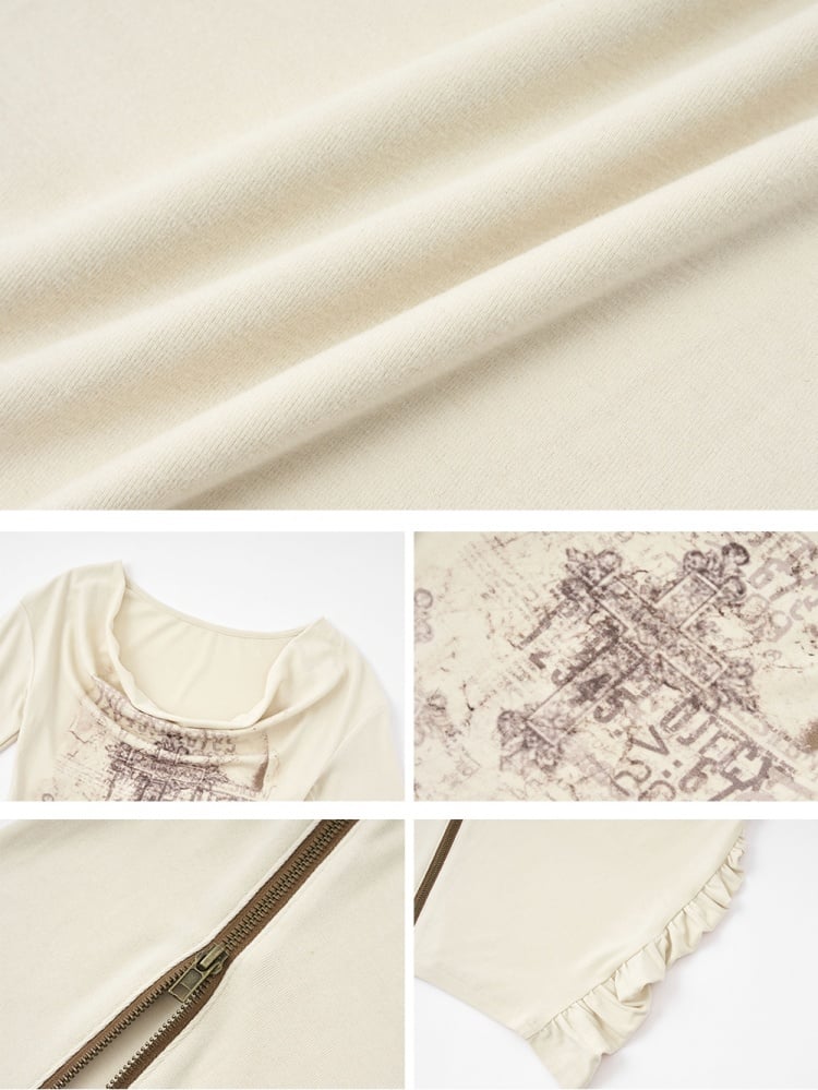 ヴィンテージパンククロスアプリコットルーシュトップジップヘム
