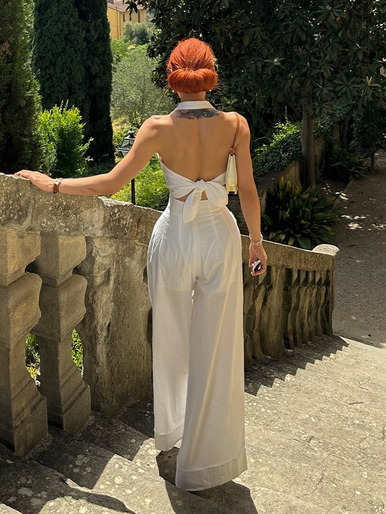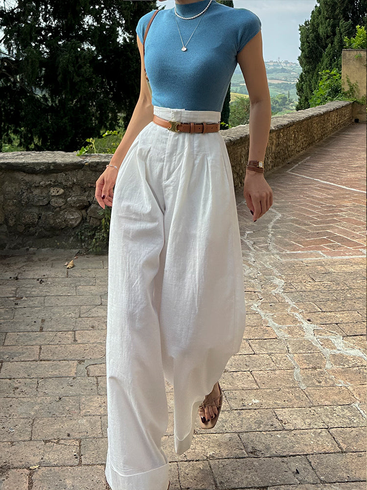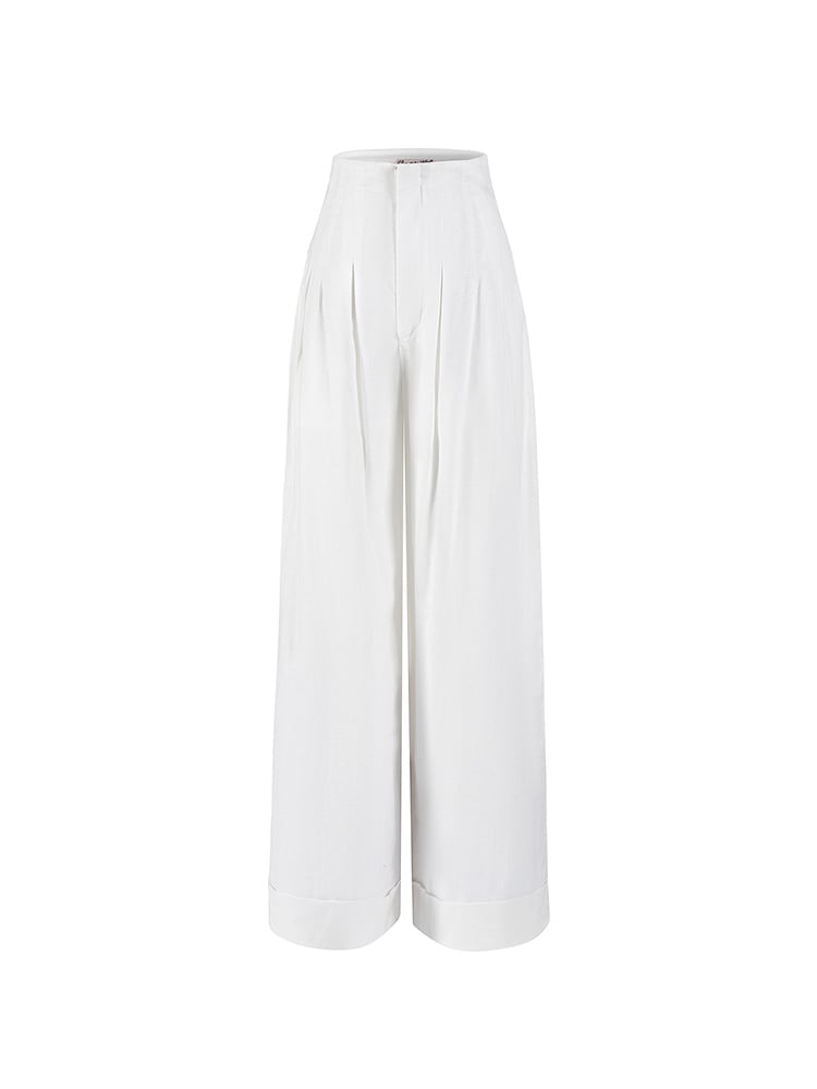 ヴィンテージホワイトのハイウエストワイドレッグパンツで、さりげなくキュートなスタイルを演出。ハイウエストデザインとワイドレッグのフィット感が、スタイルを美しく見せ、レトロな雰囲気を演出します。どんなシーンにもぴったりのこのパンツは、ワードローブに欠かせないアイテムです。