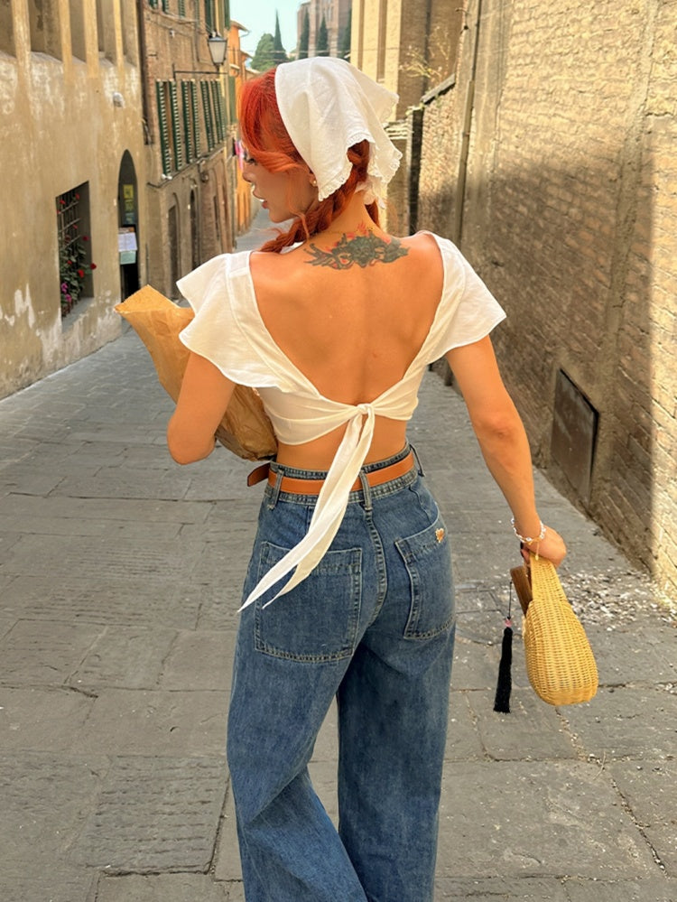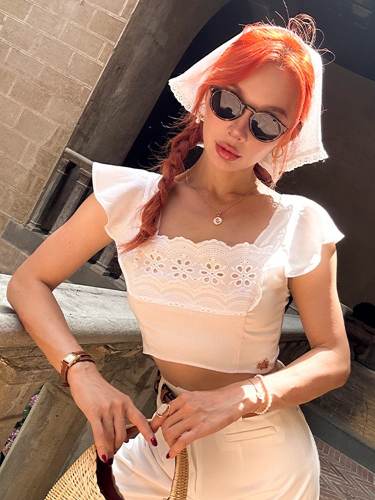 ヴィンテージホワイトのくり抜きクロップドトップ