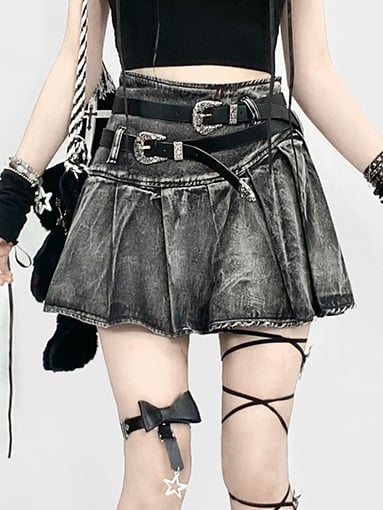 ウエストベルトがカワイイ、ダブルブラックのほろ苦いプリーツスカート