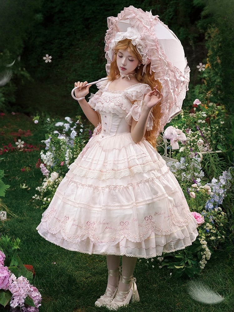 ウエスト刺繍バスクジャンパーピンクプリンセス桜スカートブロッサムチェリーロリータ