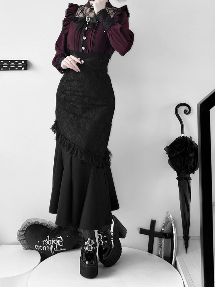 ブラックハイウエストハートラインストーンジライケイマーメイドスカート