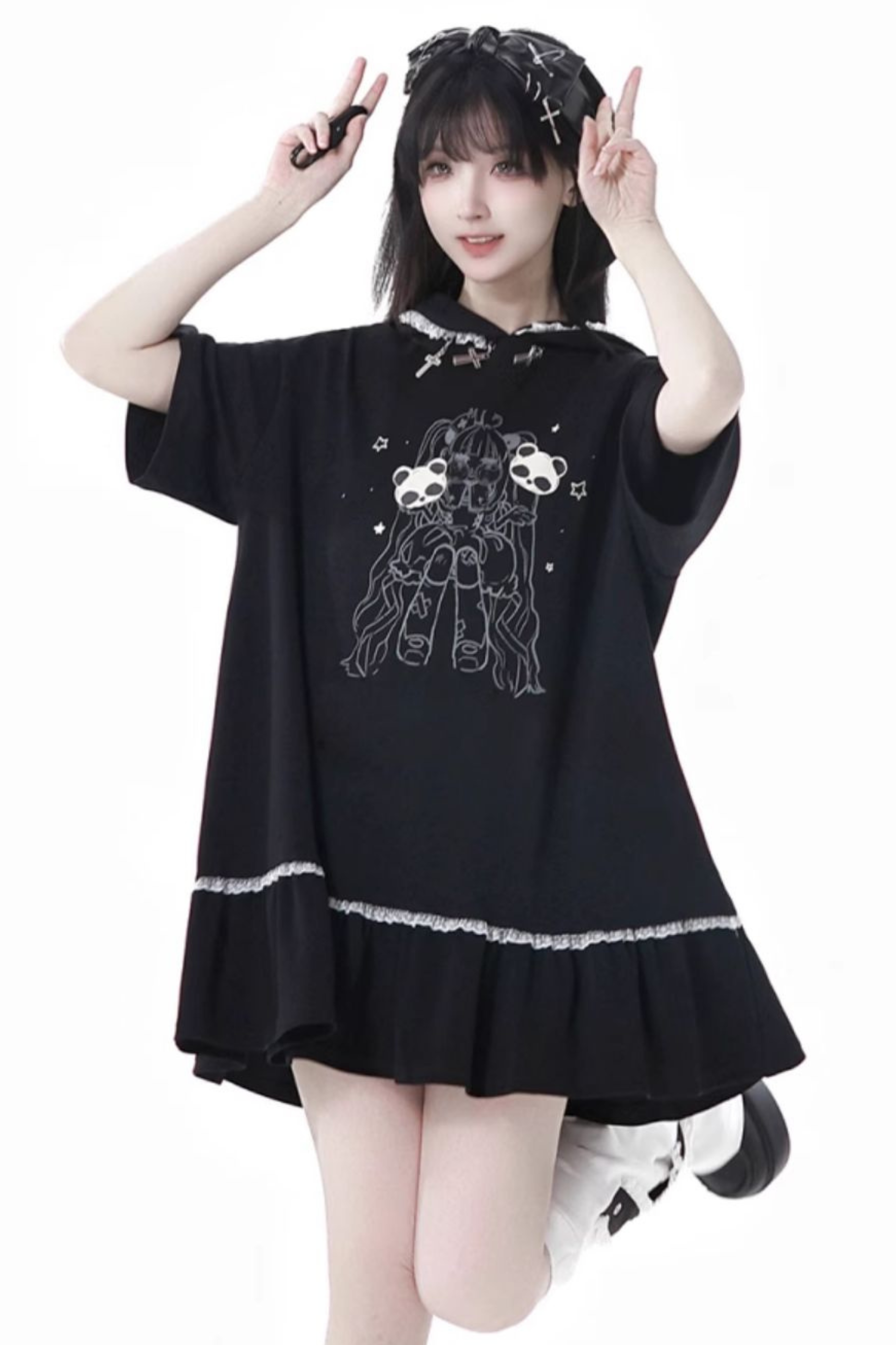 ❤フード付きフリルドレス + ネクタールーズトップ + ハーフパンツ + レッグウォーマー❤
