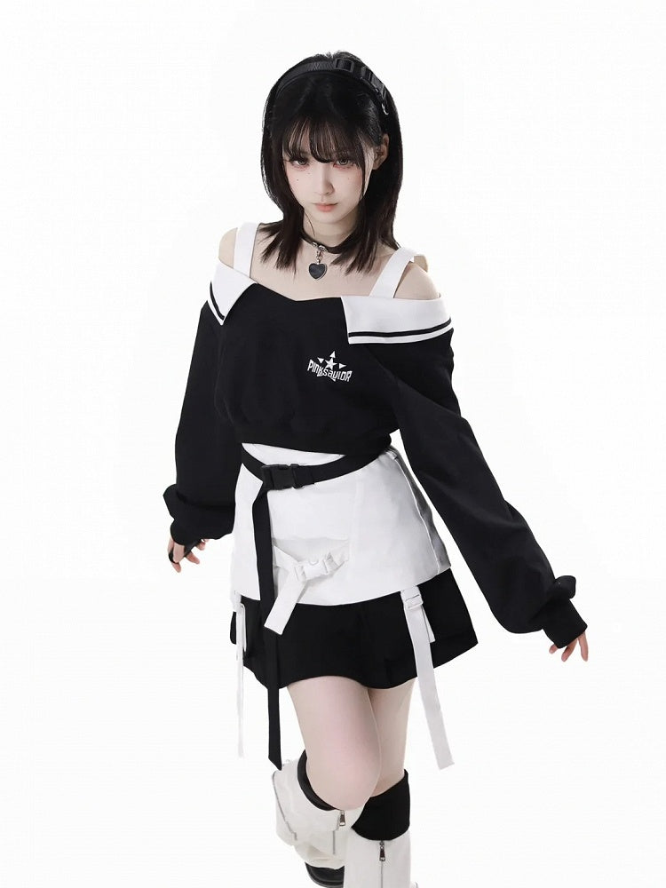 Wasteland Black V-Neck Futuristic Techwear Cropped Sweatshirt Punk