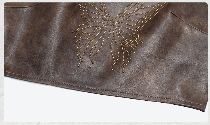 Dark Brown Wasteland Punk Halter Neck PU Butterfly Top