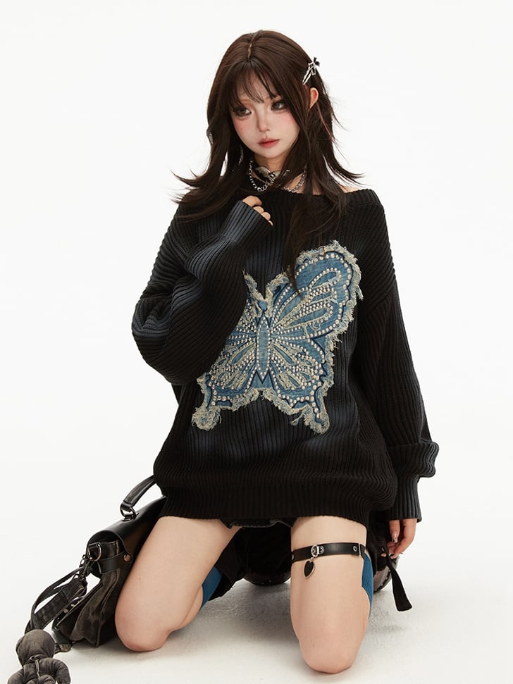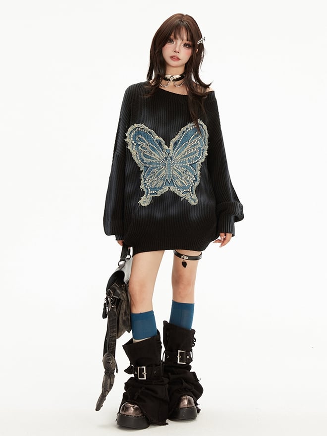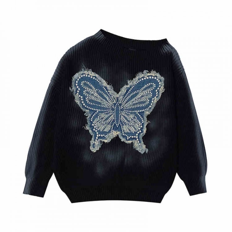 ウェイストランドパンク バタフライアップリケ ブラックセーターで、エッジの効いたスタイルに挑戦しませんか?アシンメトリーなネックラインと精巧なバタフライアップリケが、ワードローブに個性的なアクセントを添えます。シーズンを通してスタイリッシュでキュートな着こなしをお楽しみ下さい!