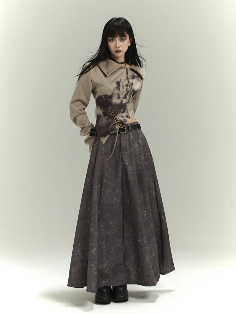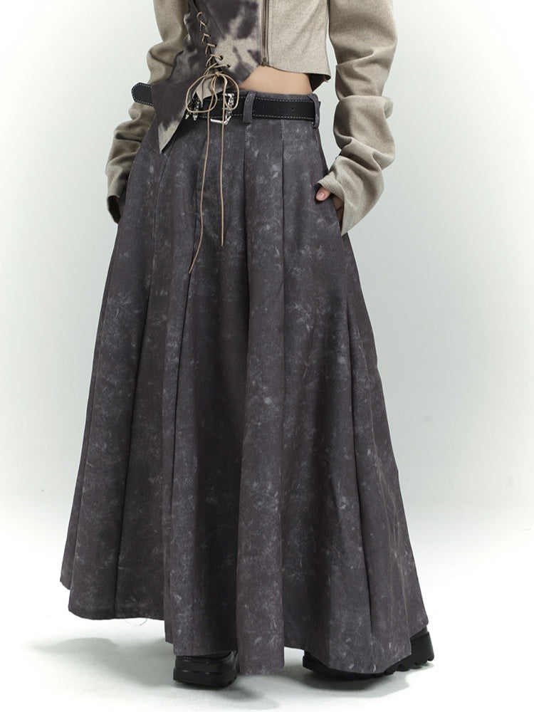 ウェイストランドパンク グレー タイダイ ダメージ加工 アンクル丈スカート