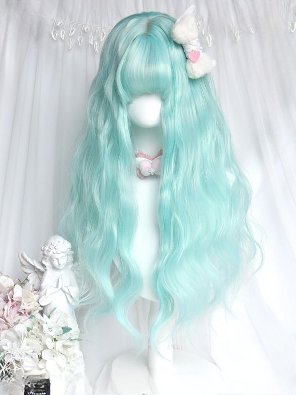 ウェーブ 65cm ウィッグ グリーン 前髪あり フルレングス