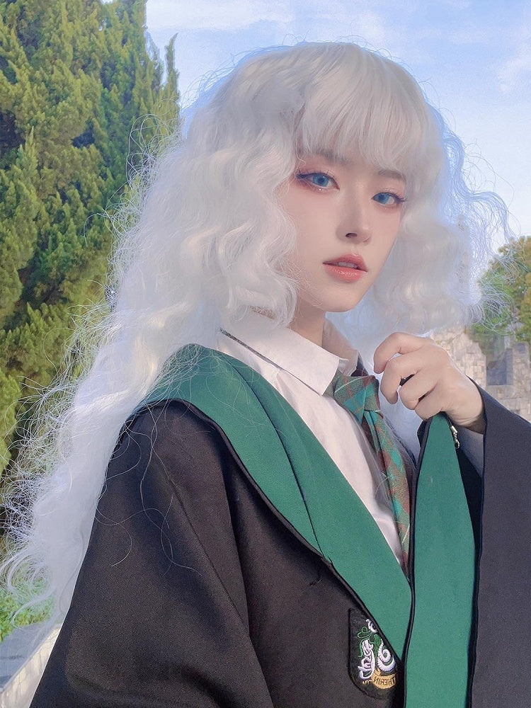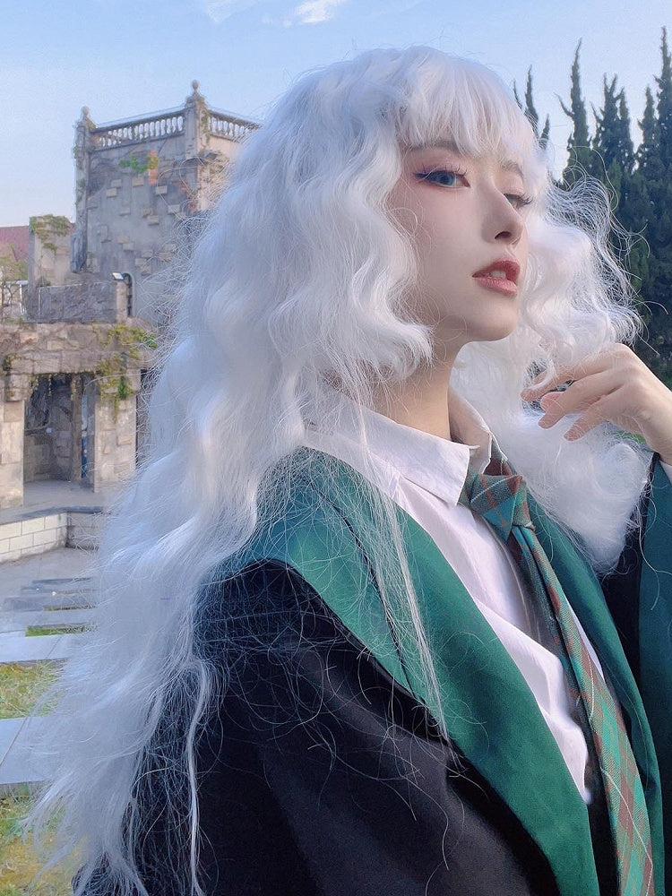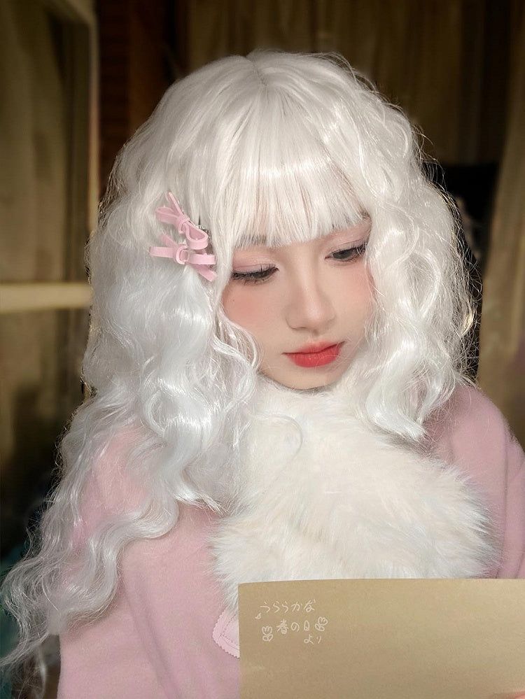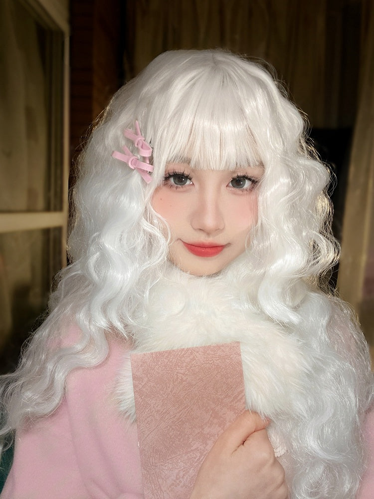 ウェーブロングホワイトフルウィッグ(前髪70cm)