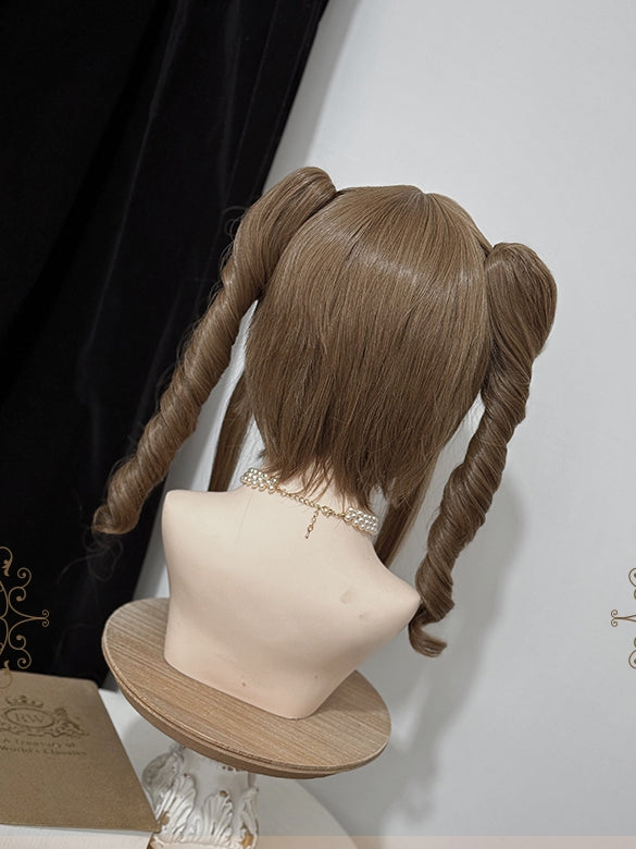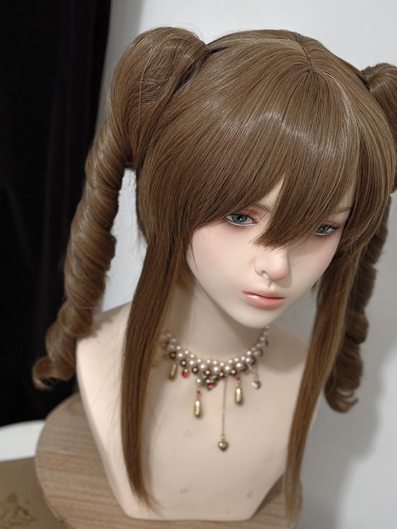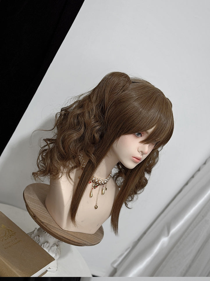 ブラウンのミディアムウィッグ + ウェーブポニーテール 2個 クロークリップ