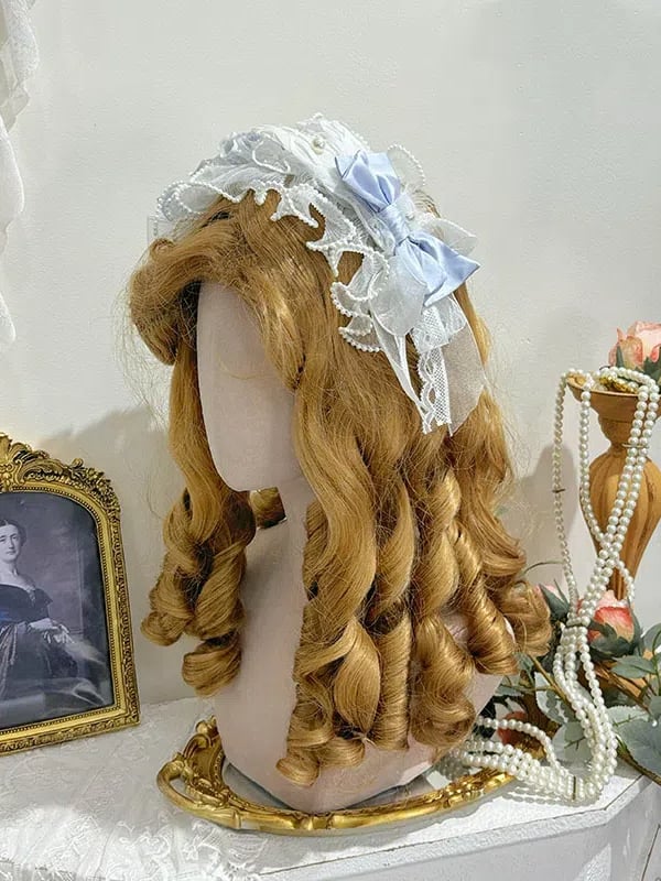 青と白のオールドスクールロリータファッションドレス 蝶結びディテール JSK セット