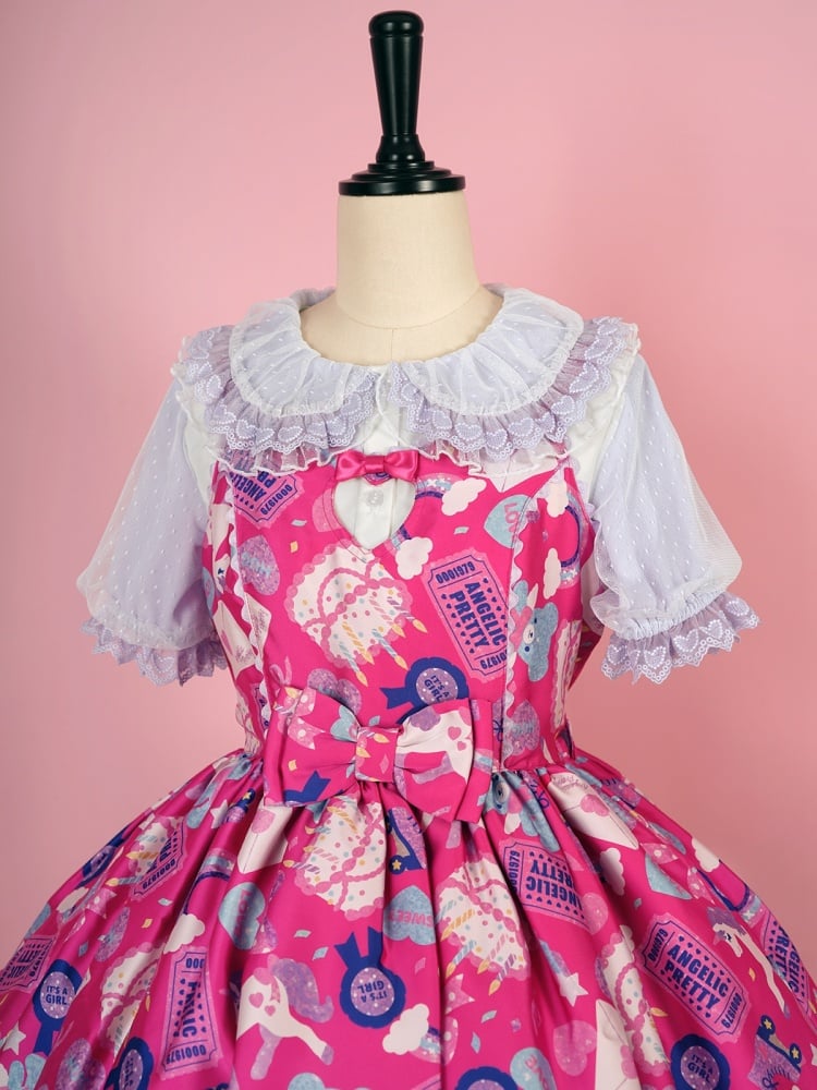 ピンクと白のオールドスクールロリータファッションドレス、蝶結びディテール、ロリータJSKセット