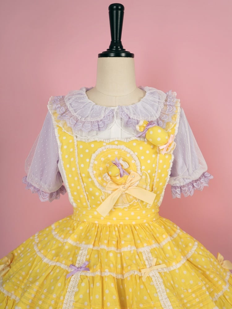 青と白のオールドスクールロリータファッションドレス 蝶結びディテール JSK セット