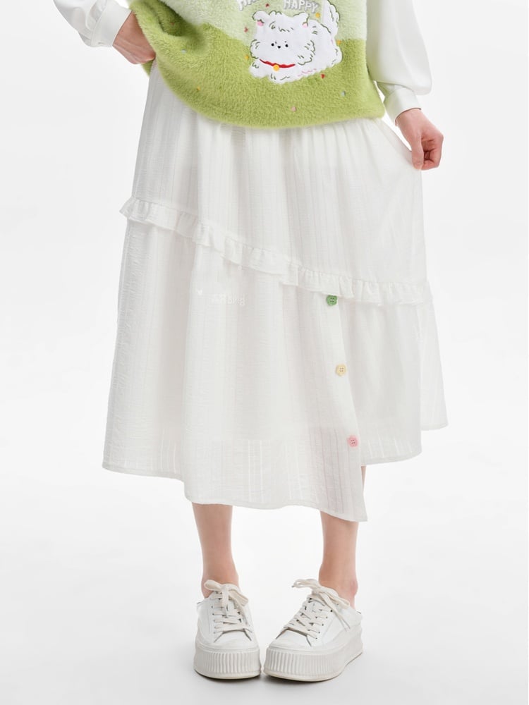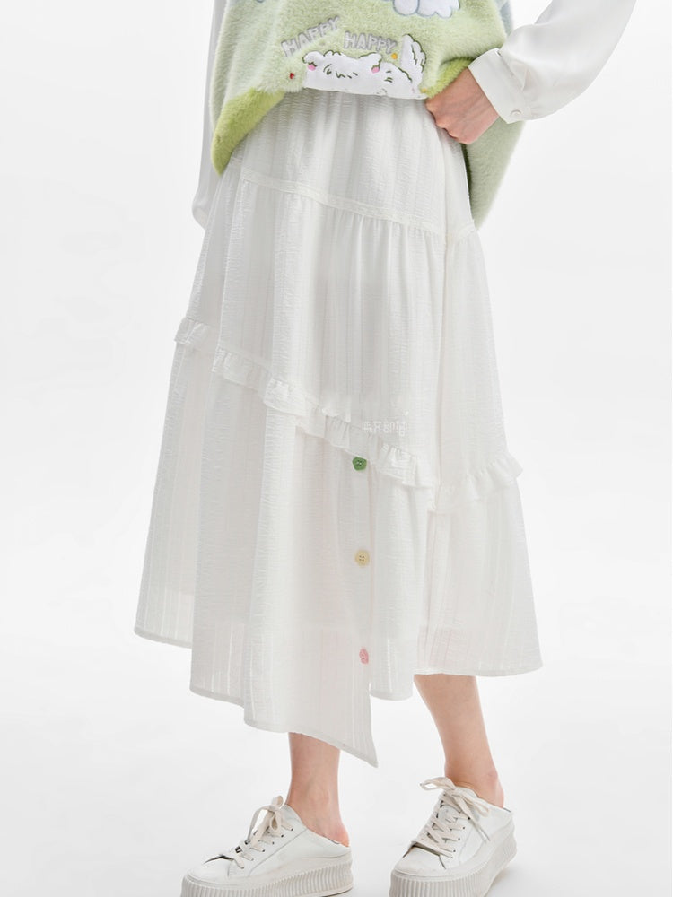 ホワイトのアシンメトリーヘムスカートで、ワードローブにキュートなアクセントをプラス。個性的なアシンメトリーヘムが特徴のこのスカートは、着映えするだけでなく、どんなシーンにもぴったり。このマストハブアイテムで、スタイルをワンランクアップさせましょう。
