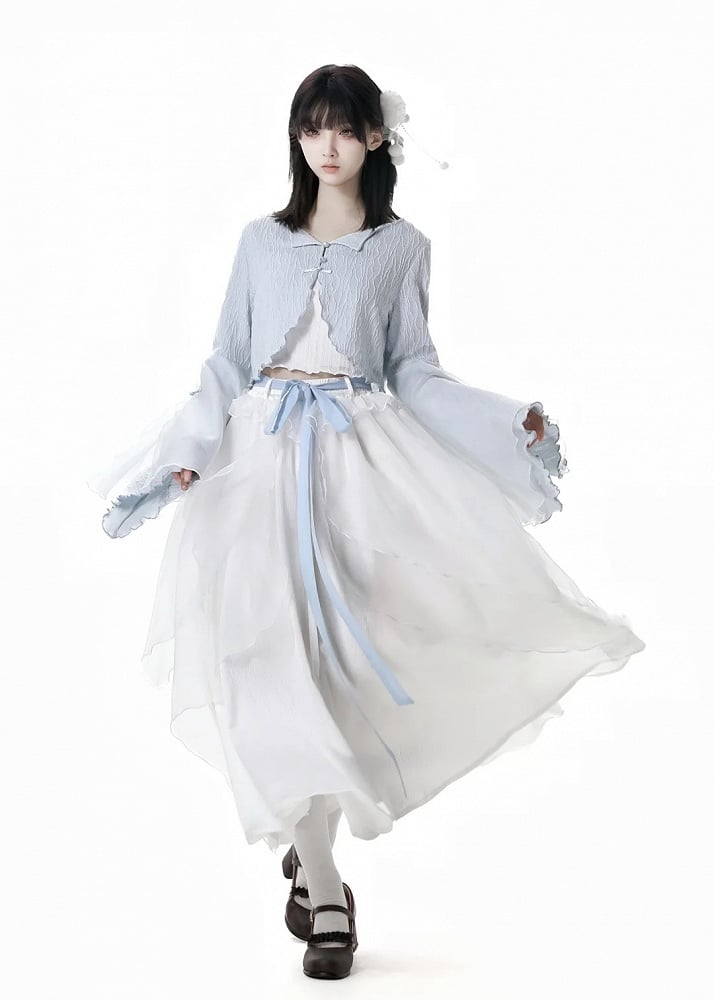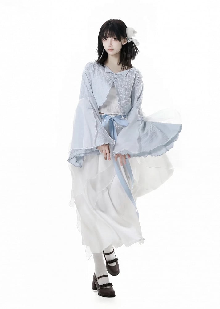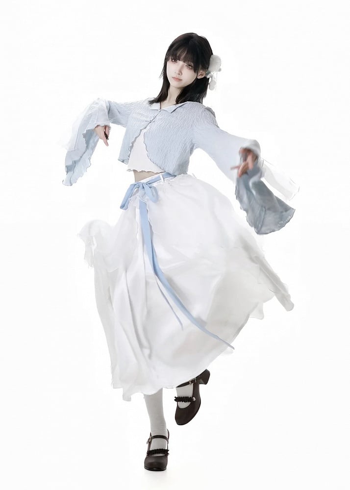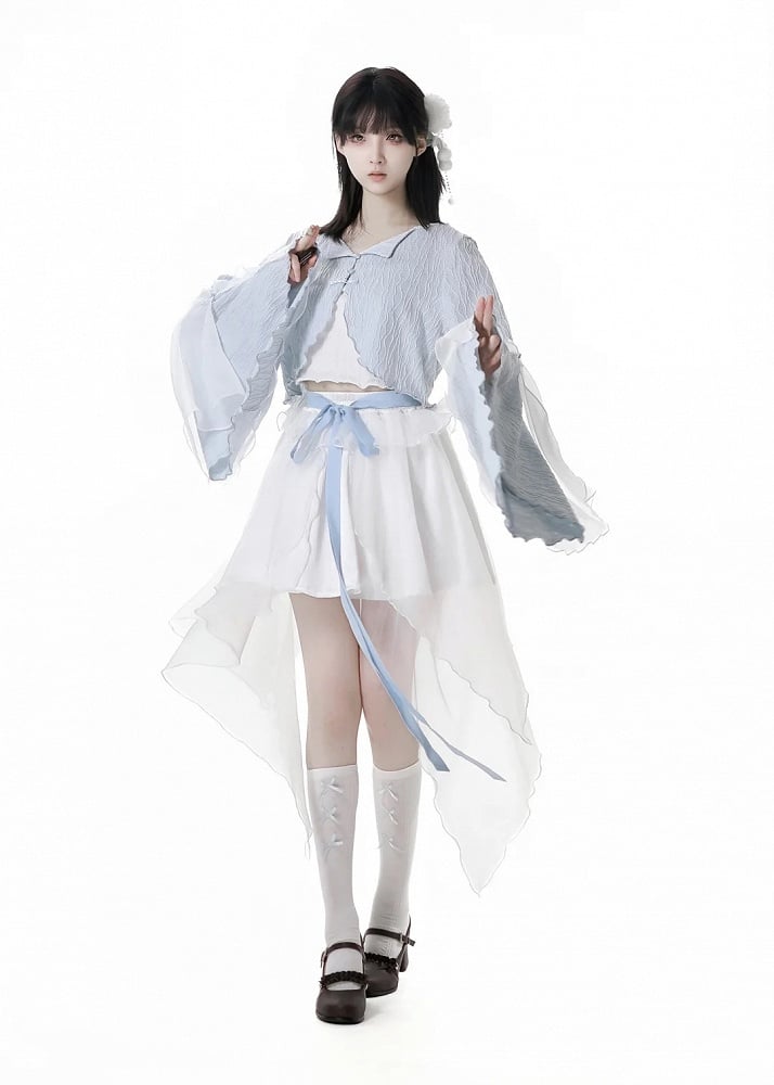 青と白のオールドスクールロリータファッションドレス 蝶結びディテール JSK セット