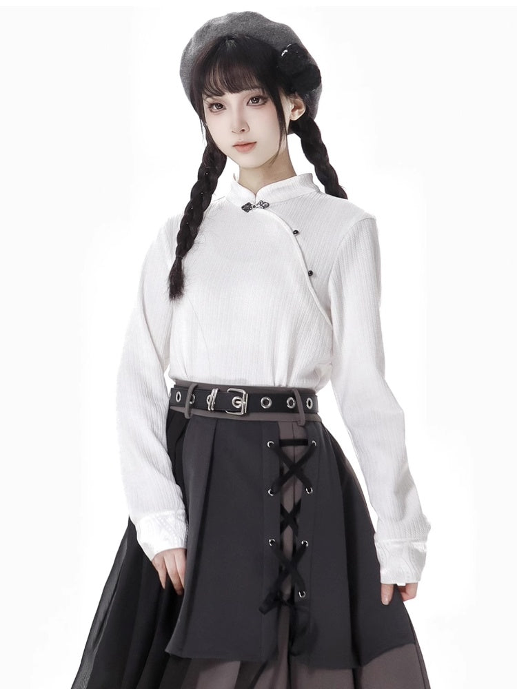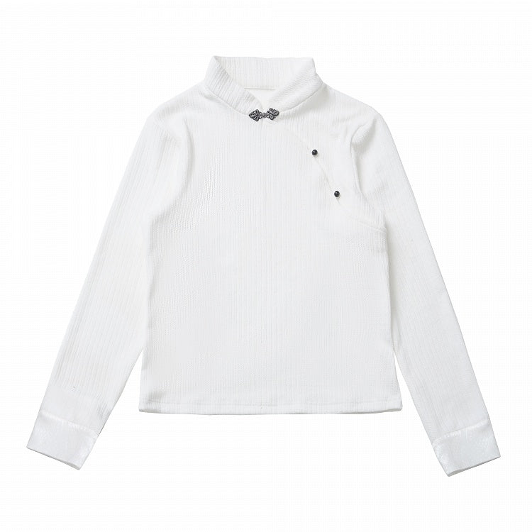 この愛らしいホワイトのバンドカラー長袖トップスは、どんな装いも格上げしてくれるスタイリッシュなデザインです。バンドカラーが個性的なアクセントを添え、長袖は暖かさと快適さを提供します。キュートでファッショナブルなルックにぴったりです。