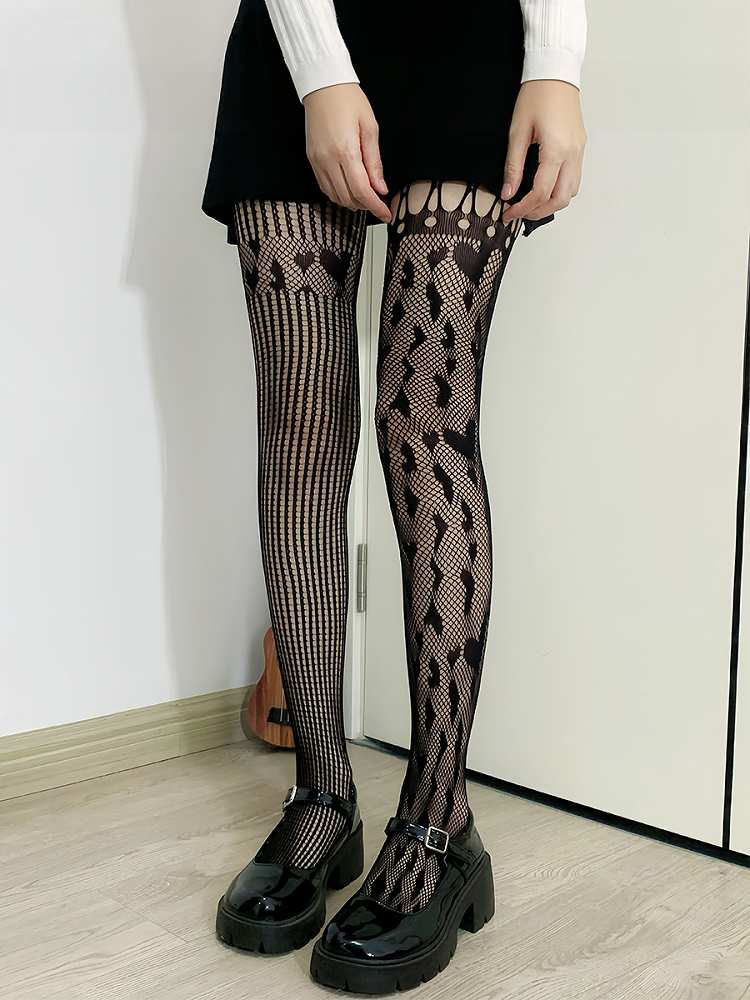 ホワイト/ブラック レース ハート くり抜き タイツ