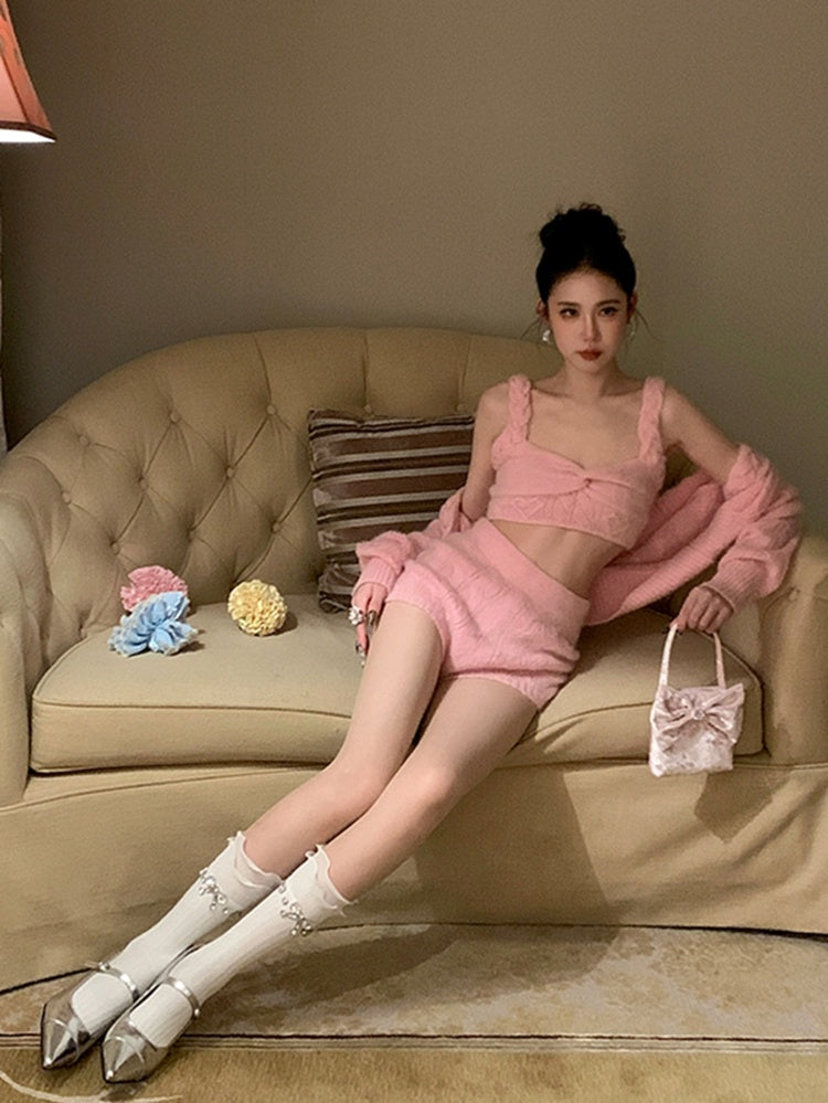 ピンクと白のオールドスクールロリータファッションドレス、蝶結びディテール、ロリータJSKセット