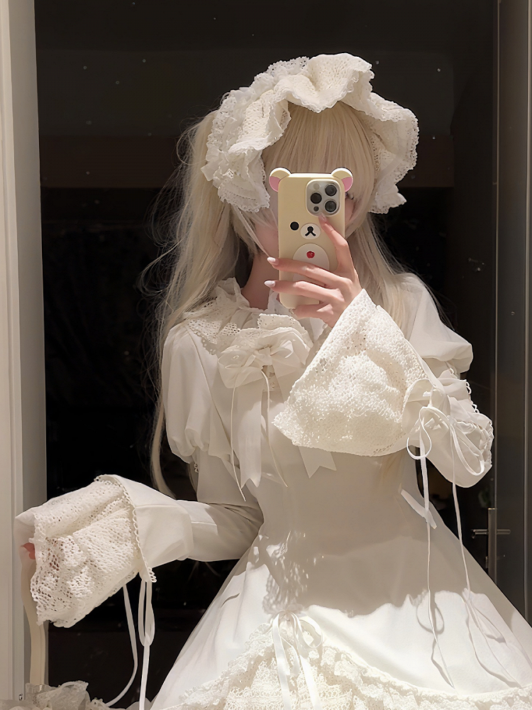 青と白のオールドスクールロリータファッションドレス 蝶結びディテール JSK セット