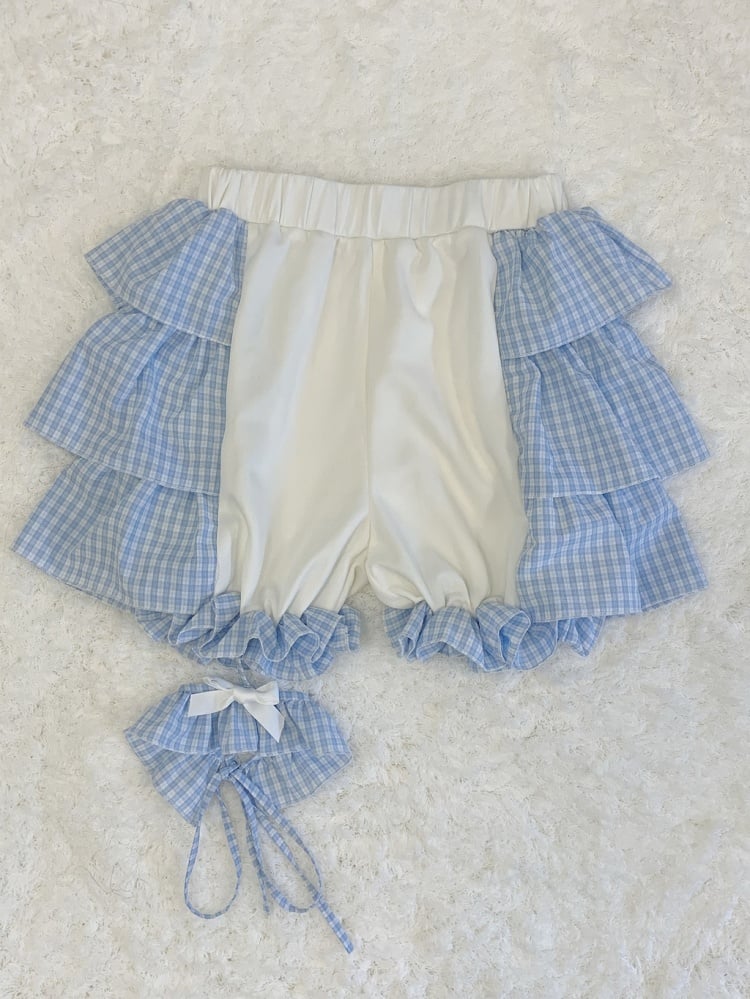 青と白のオールドスクールロリータファッションドレス 蝶結びディテール JSK セット