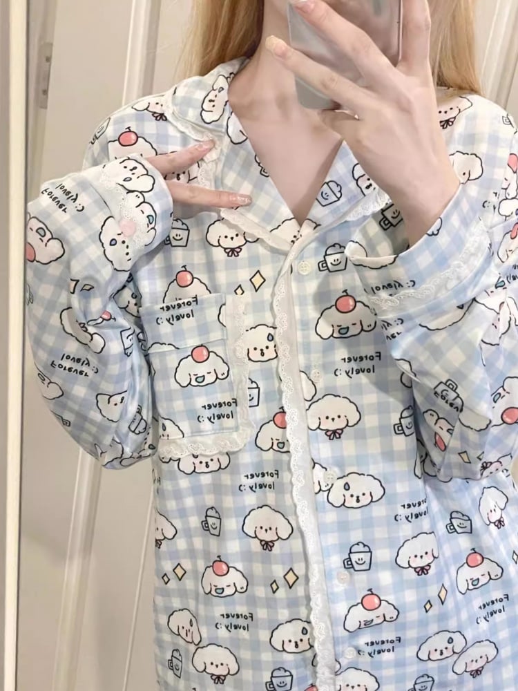 ホワイト&ブルーのチェック柄パジャマセット