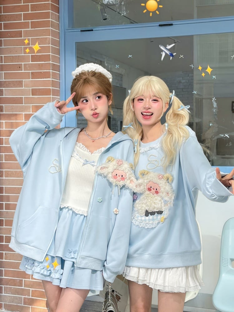 青と白のオールドスクールロリータファッションドレス 蝶結びディテール JSK セット