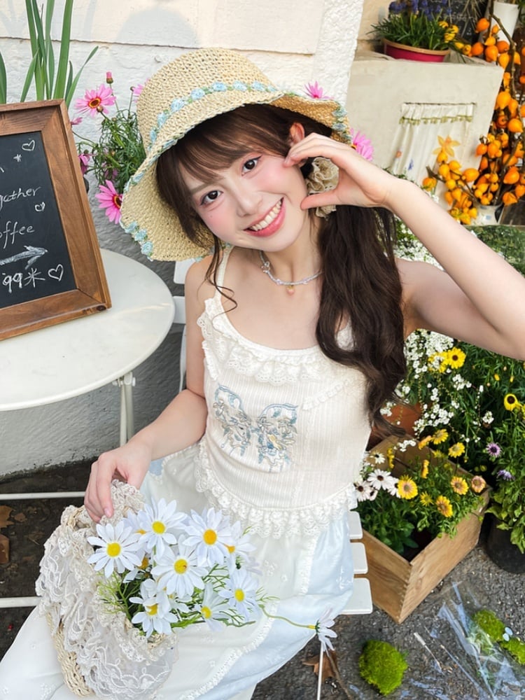ホワイトバタフライ刺繍フリルレースヘムホリデーキャミソールトップ