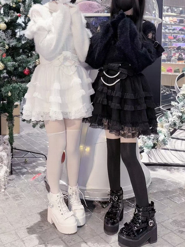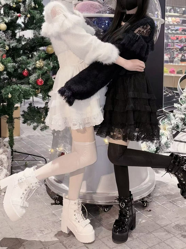黒と白のオールドスクールロリータファッションドレス蝶結びロリータJSKセット