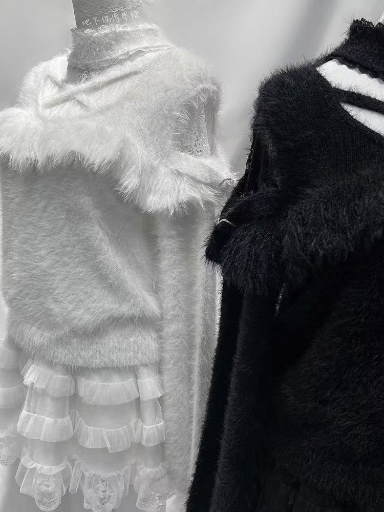 White Sweater with Criss-cross Neckline, Shoulder Cut-outs and Cross Embellishment