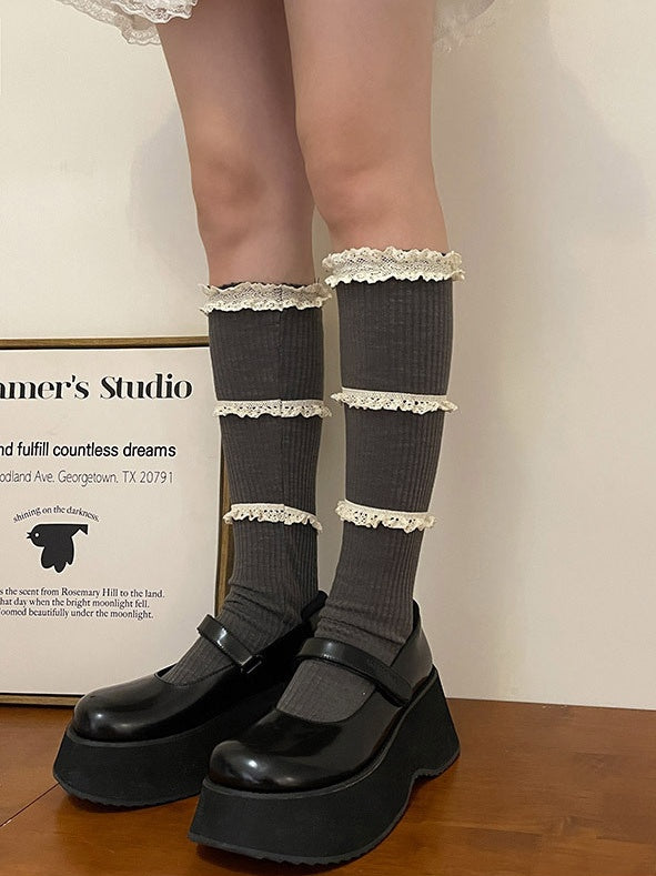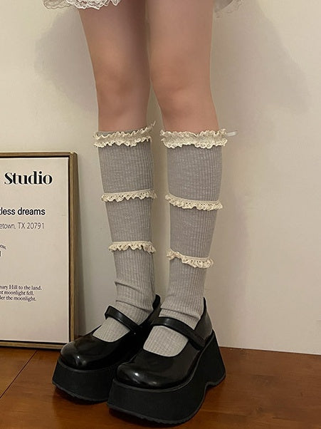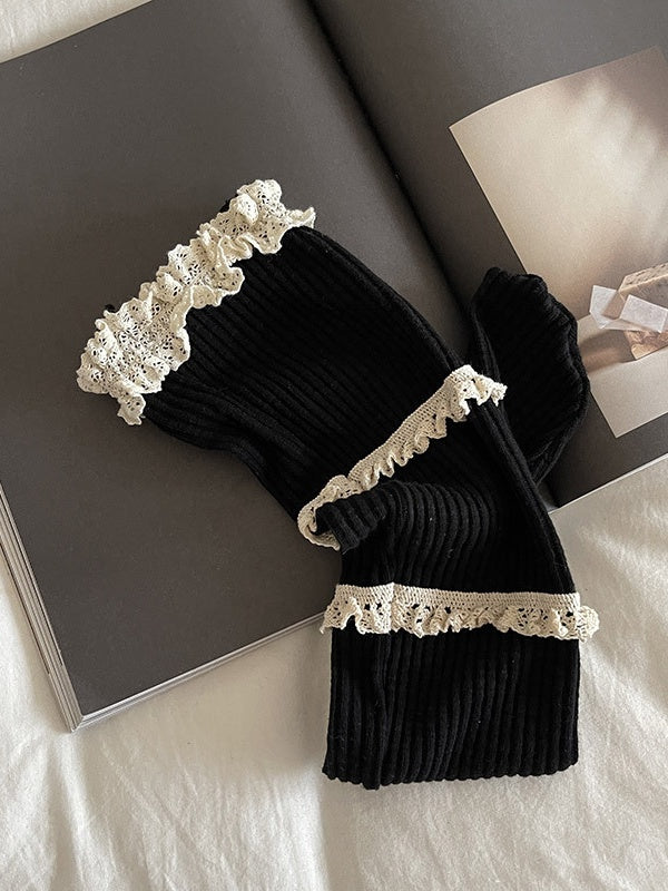 ホワイト/ダークグレーのスイートフリルカフスカーフソックス