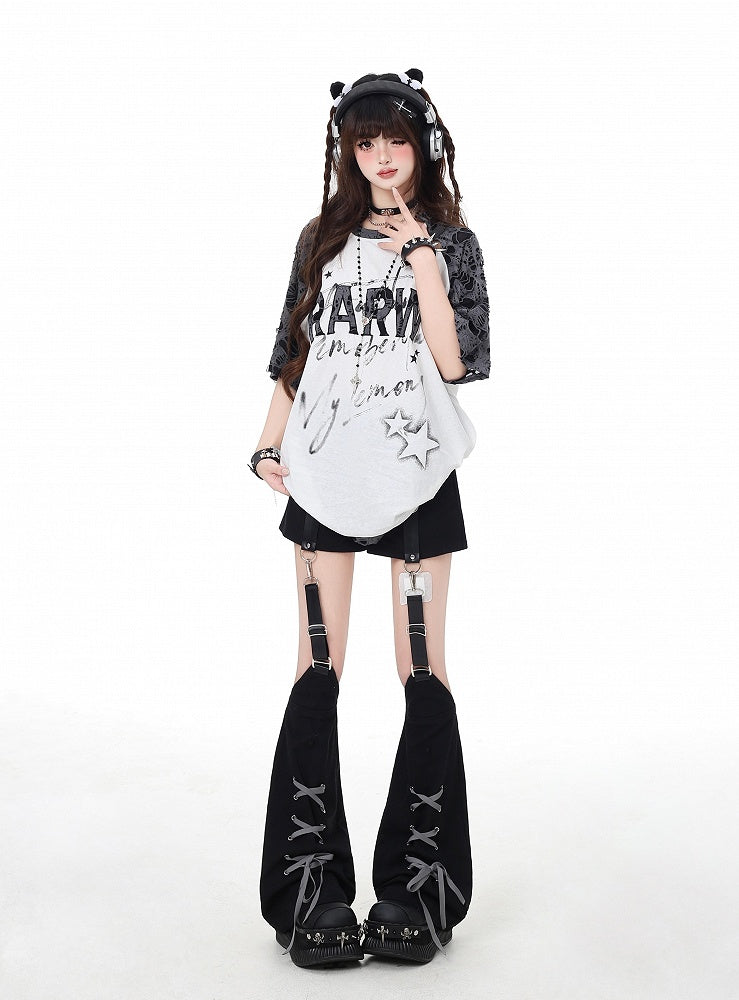 ホワイト ディストレスト ホールズ スターバックル グラフィック Tシャツ