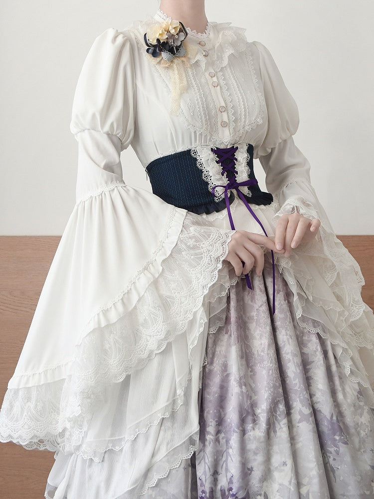 青と白のオールドスクールロリータファッションドレス 蝶結びディテール JSK セット