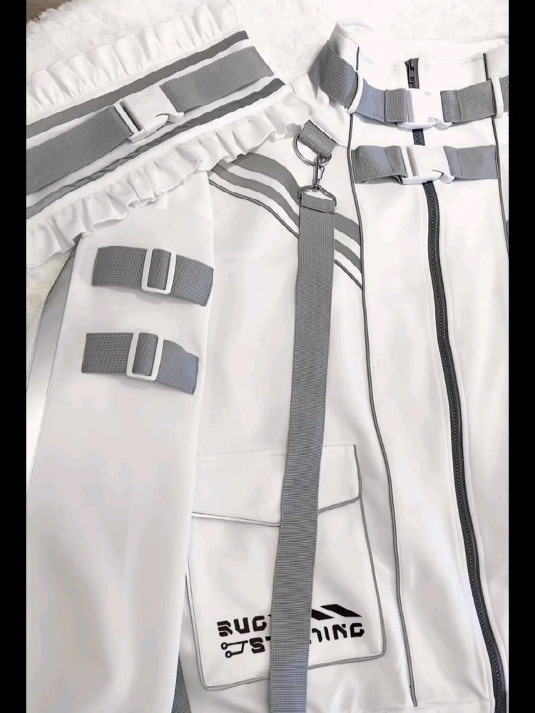 ホワイトのフューチャリスティックサイバーパンクバックルストラップジライケイジャケットで、全く新しいレベルのキュートさを体験してください。耐久性のある素材を使用したこのジャケットは、ユニークなバックルストラップデザインがコーディネートにエッジの効いたアクセントを添えます。この唯一無二のジャケットで、スタイリッシュかつ快適な着心地をお楽しみください。